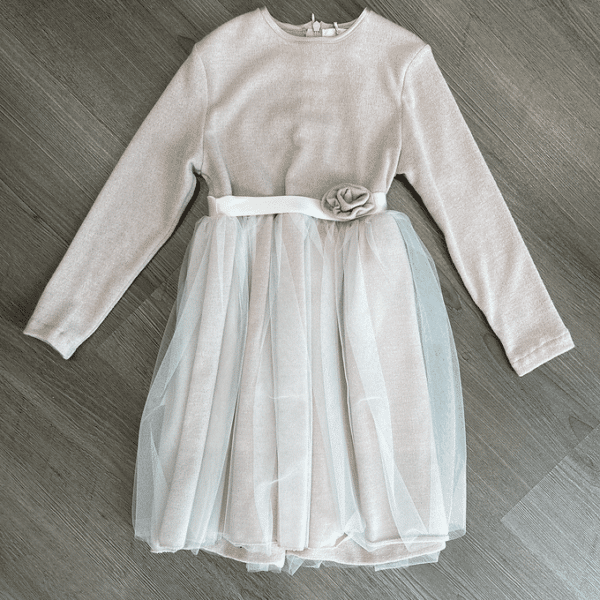 Abito con gonna in tulle e cintura con decorazione.