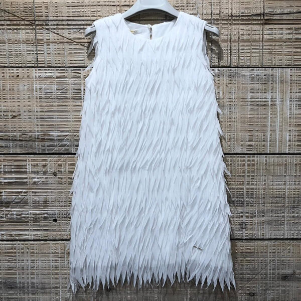 Abito con tessuto sfrangiato.