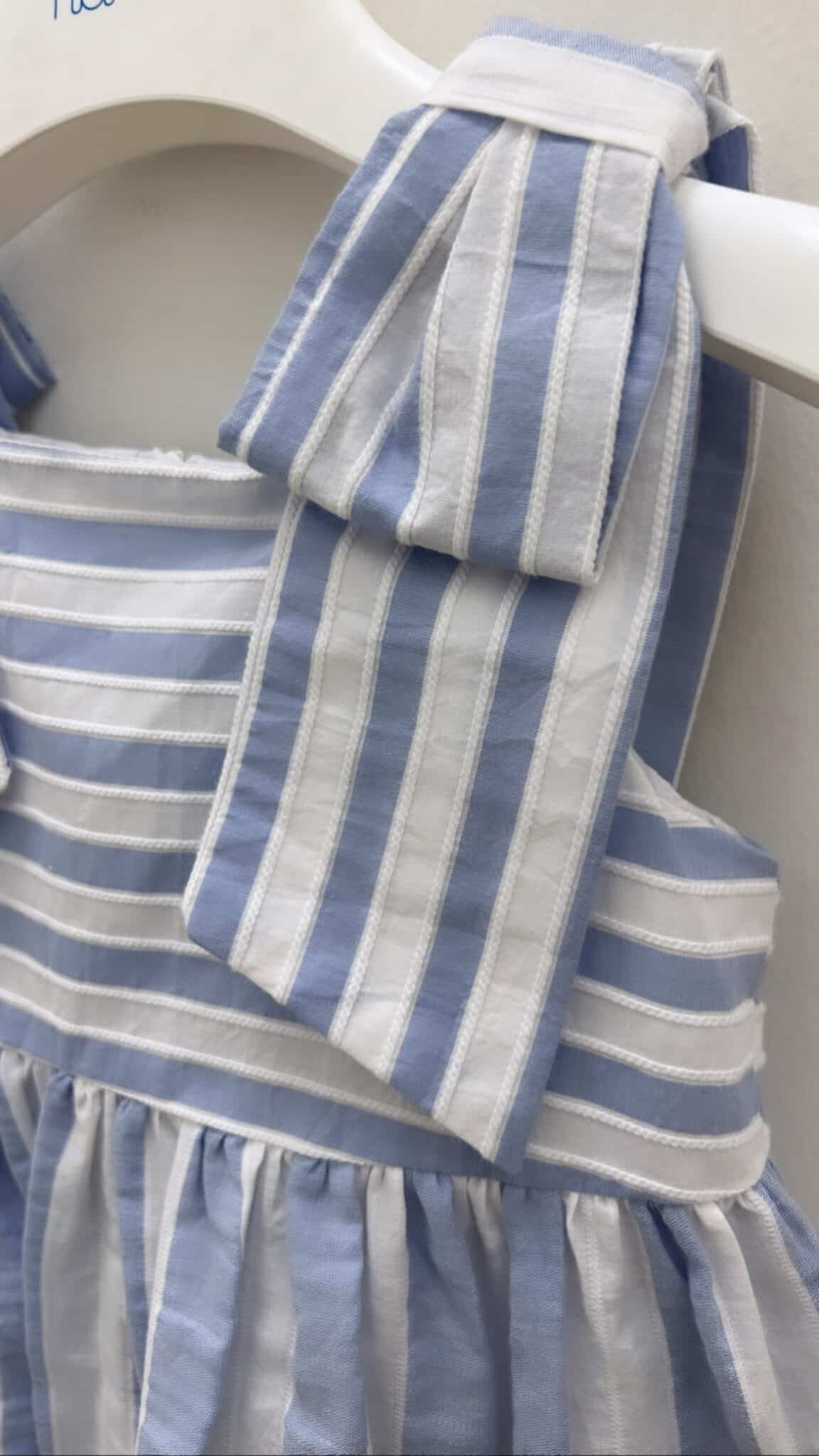 Abito smanicato riga con fiocchi sulle spalle