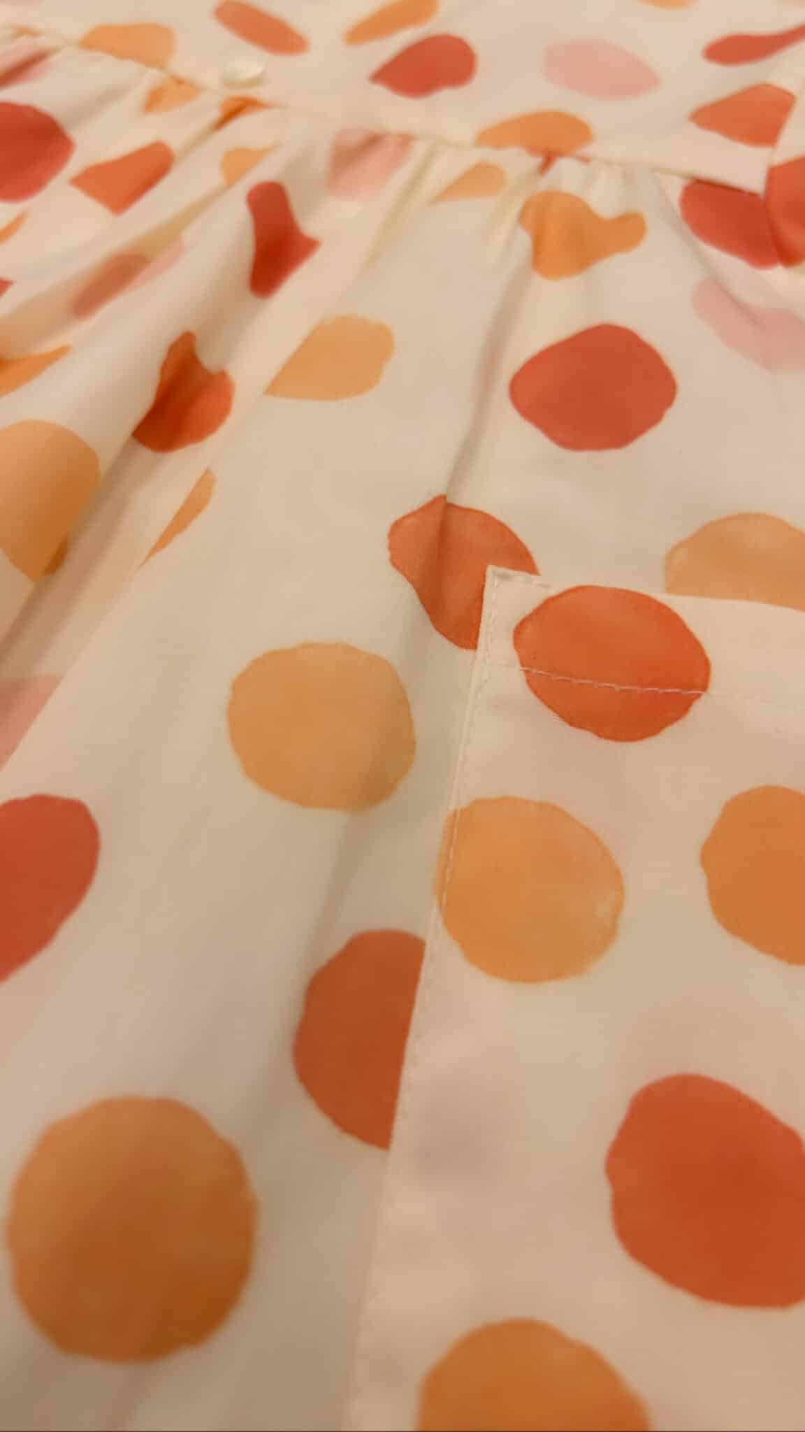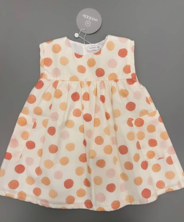Abito neonata smanicato in tela di cotone fantasia e tasconi laterali