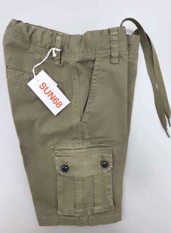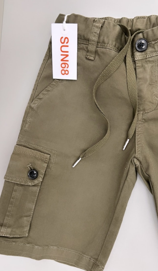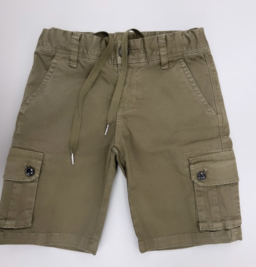 Bermuda cargo con tasconi laterali, coulisse in vita ed elastici interni per regolare misura