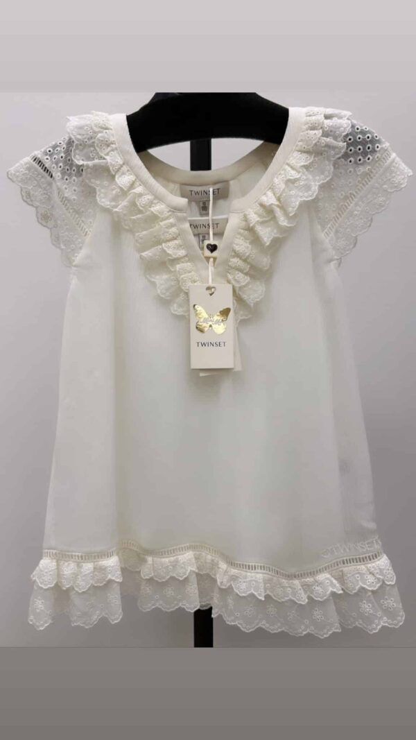 Blusa con dettagli san gallo e canotta in pura cotone