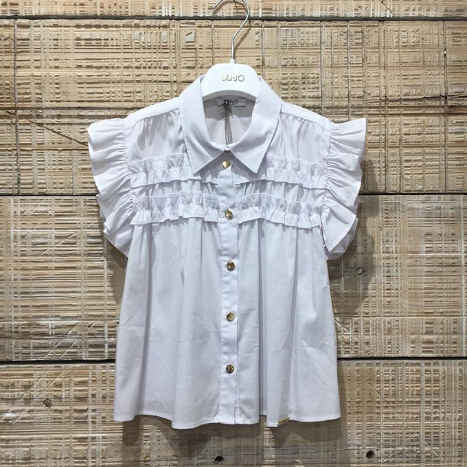 Camicia con manica ad aletta e arricciatura sulla parte superiore, bottone color oro.