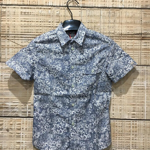 Camicia a mezza manica con stampa fiore e taschino applicato sul davanti.