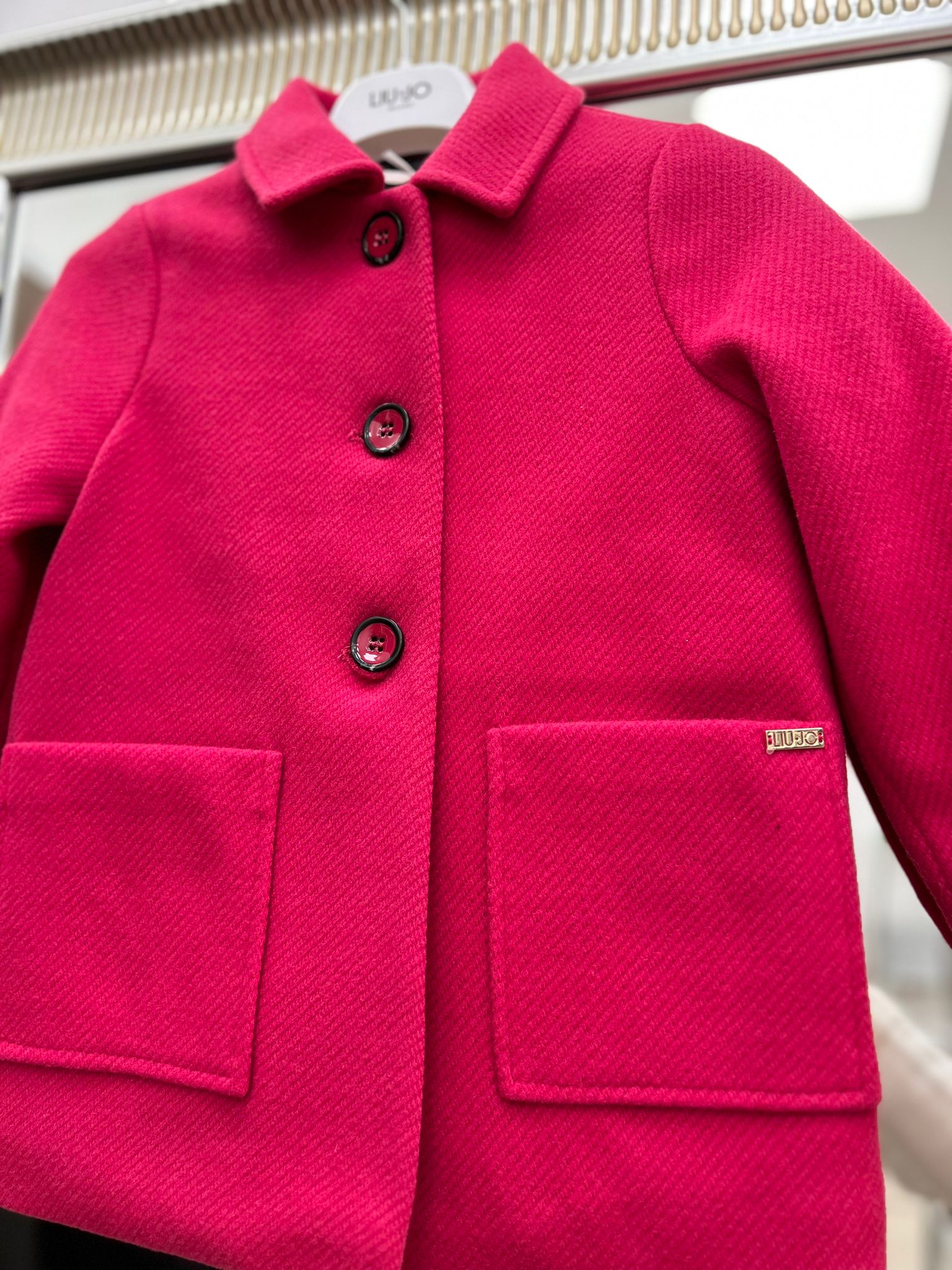 Colore fuxia , bottoni e tasche laterali