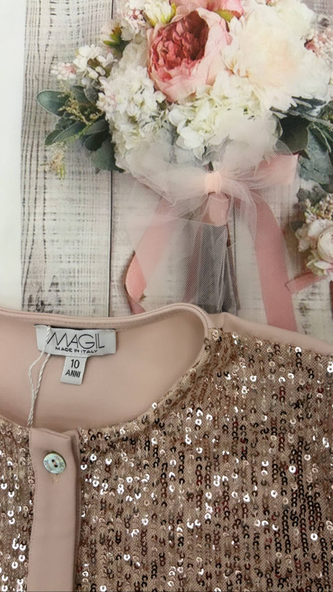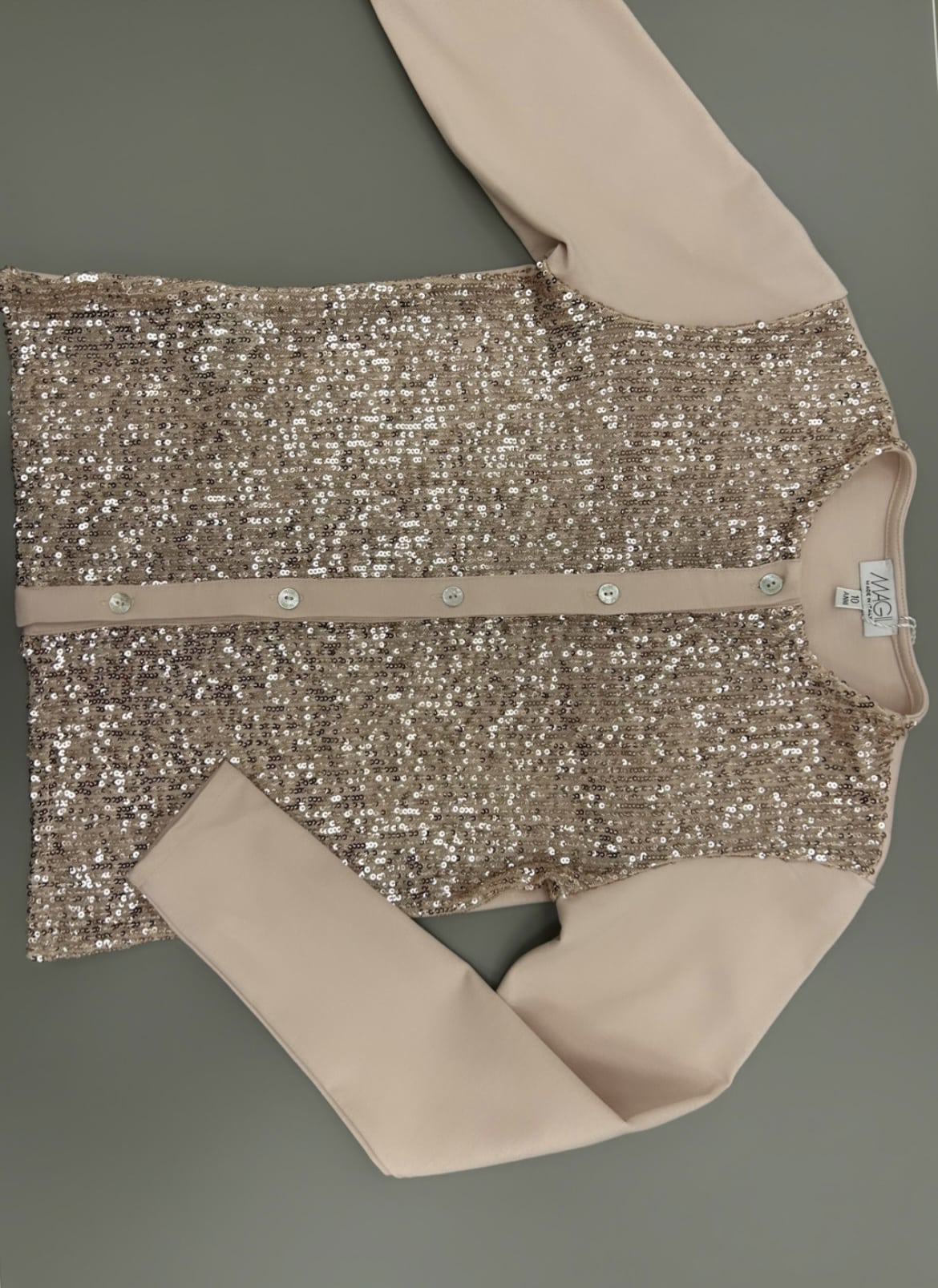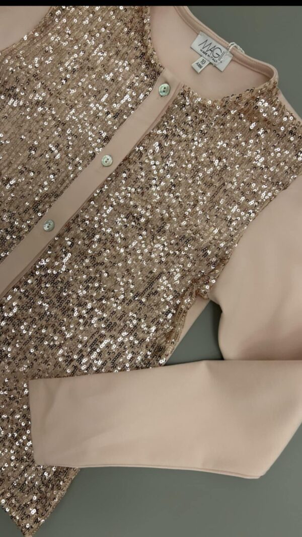 Cardigan punto milano elasticizzato con davanti in pailettes
