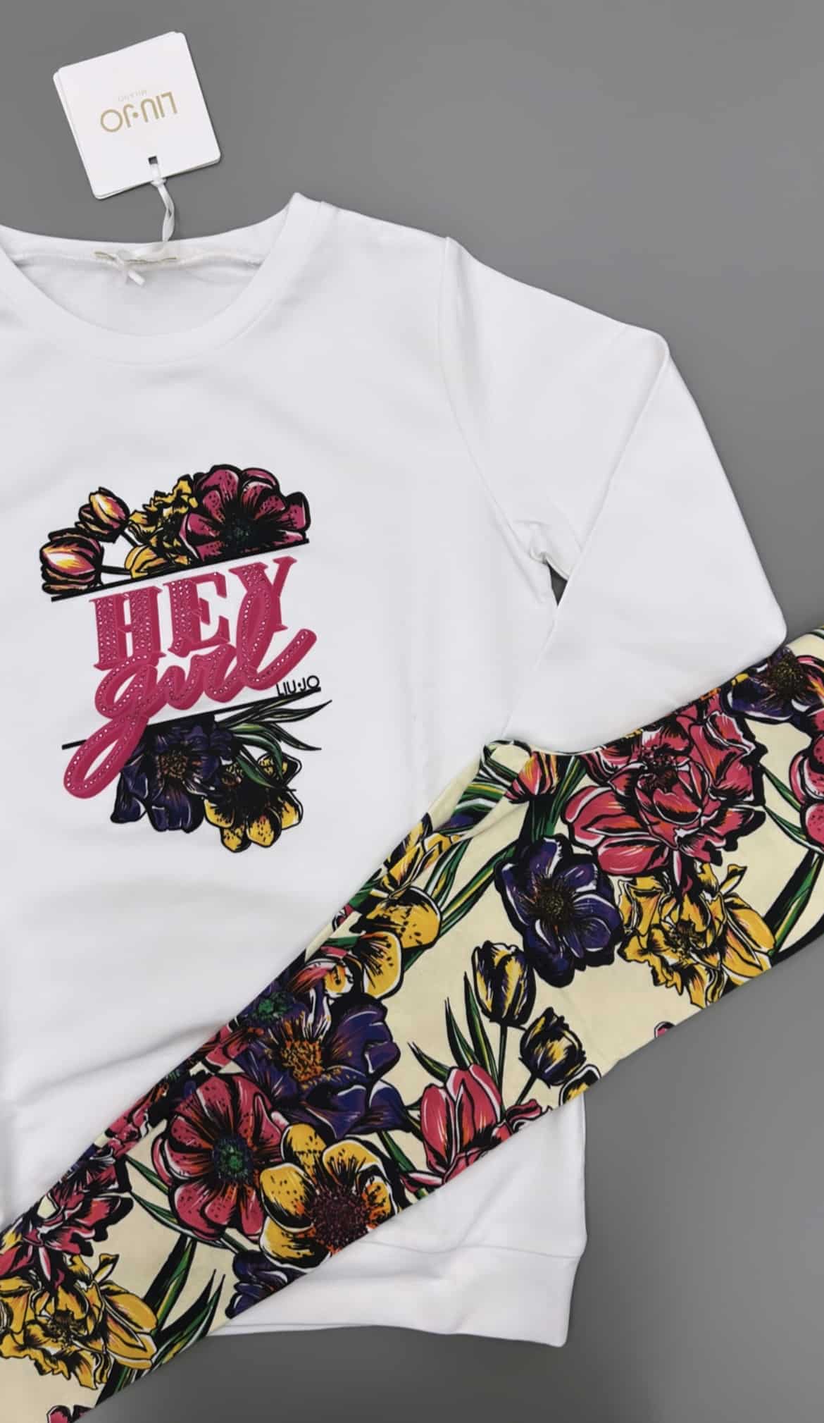Completo bambina maxi felpa stampa + leggings flowers
