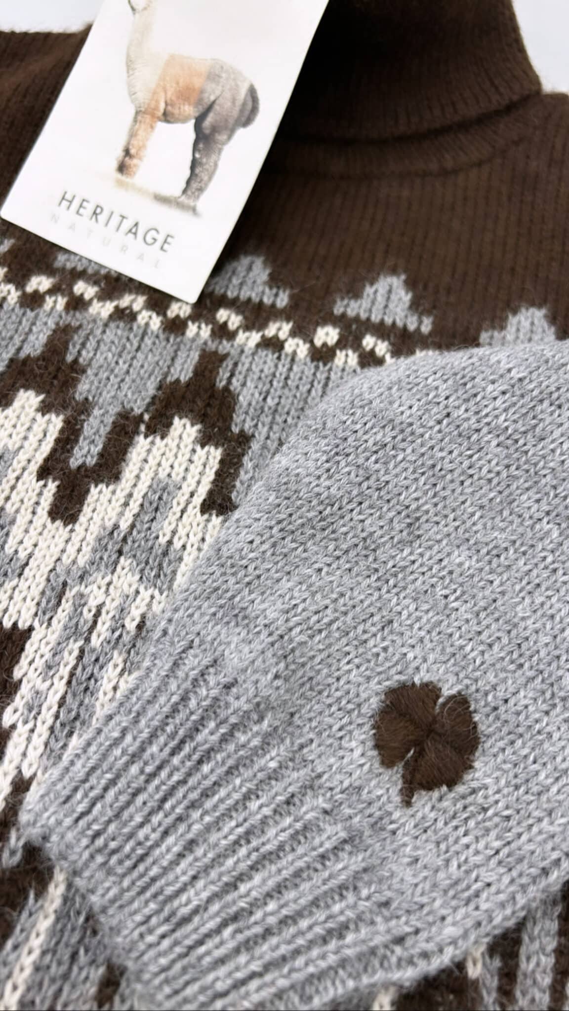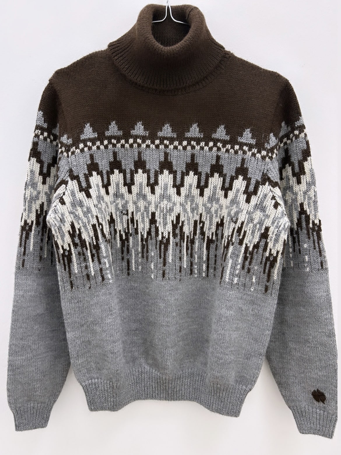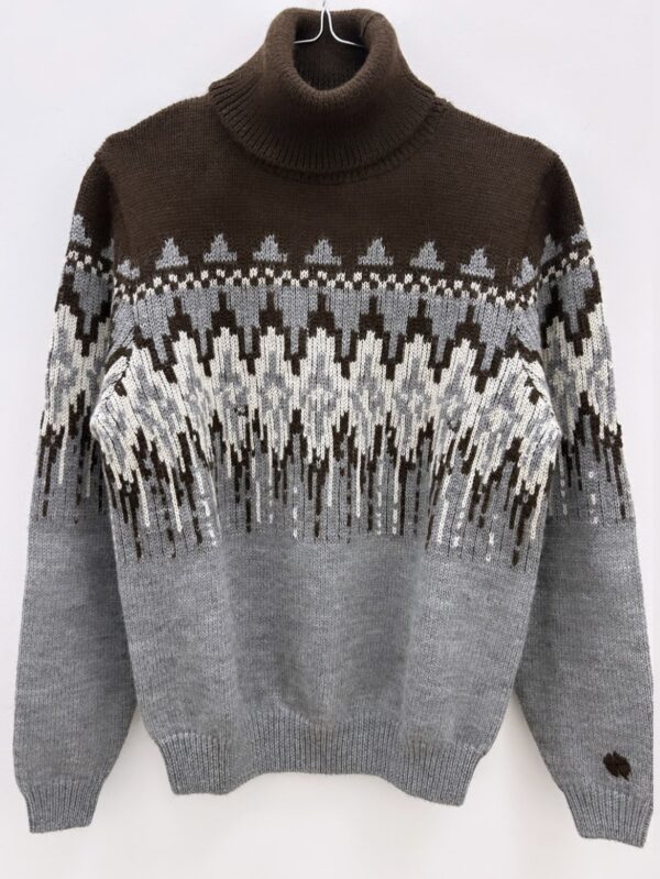 Maglione dolcevita con finiture a coste sul fondo e polsini motivo jacquard sulla parte superiore