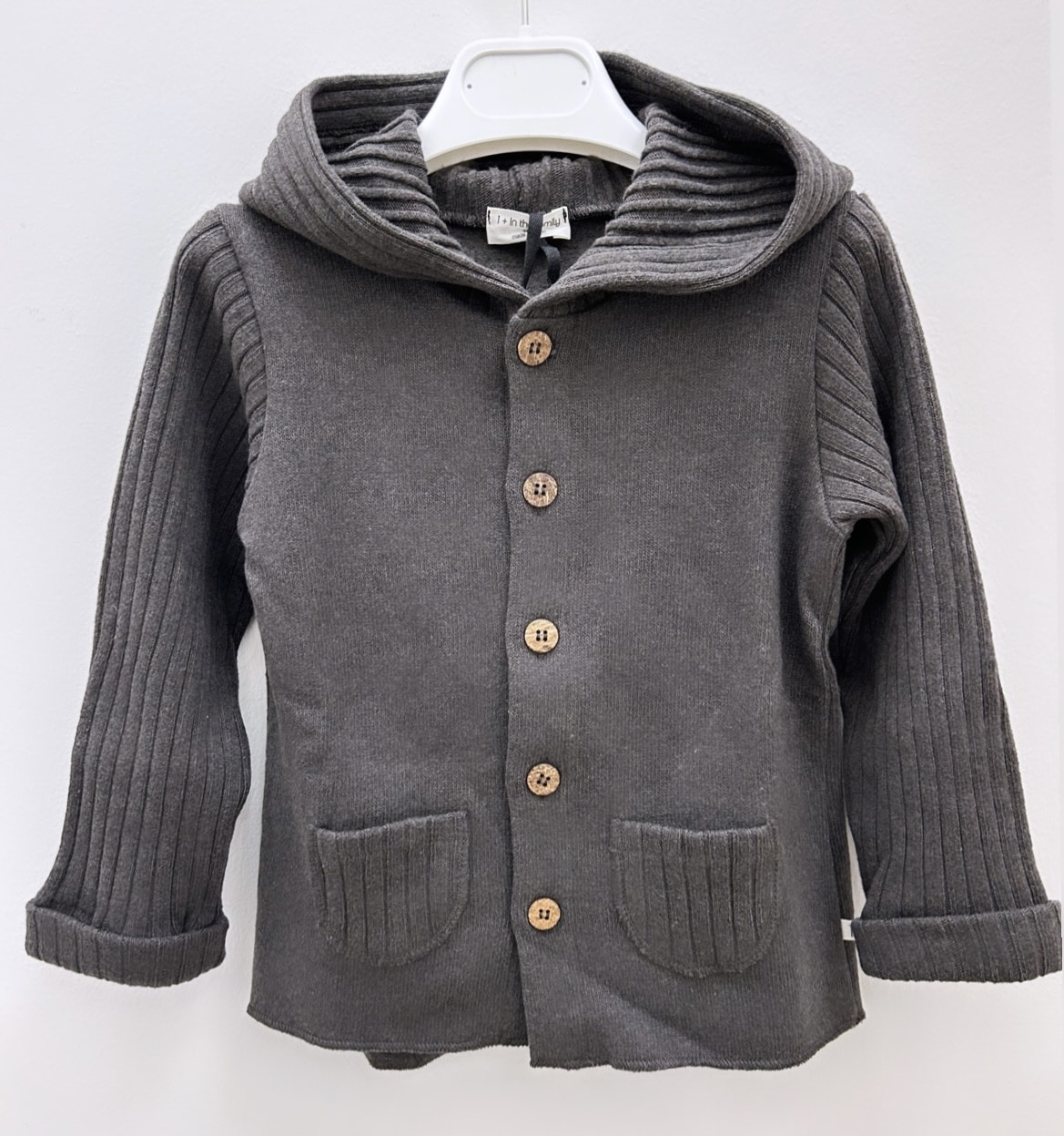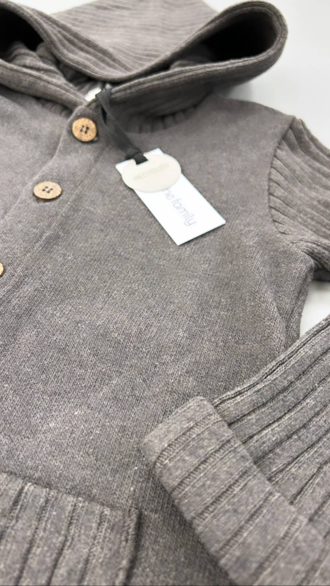 Felpa con cappuccio e maniche a costine aperta con bottoni
