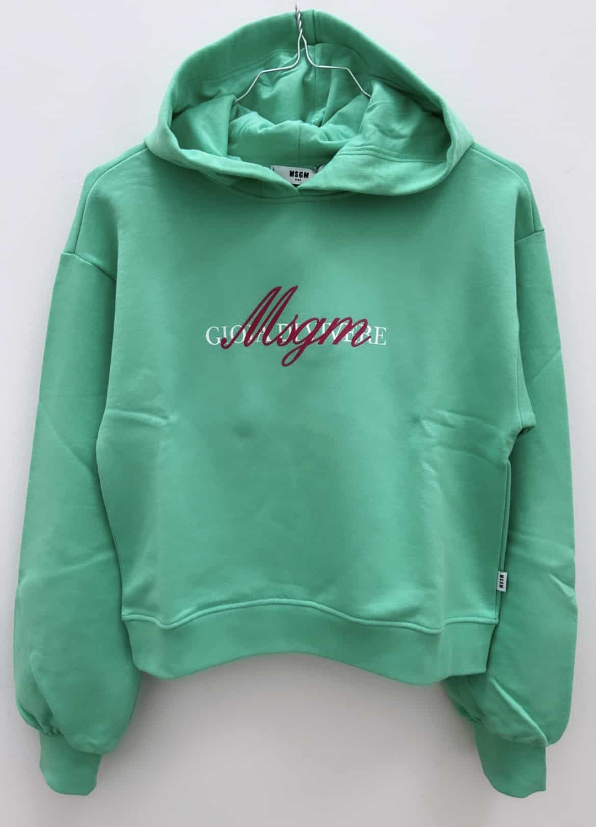 Felpa cropped con cappuccio e scritta logo sul davanti.