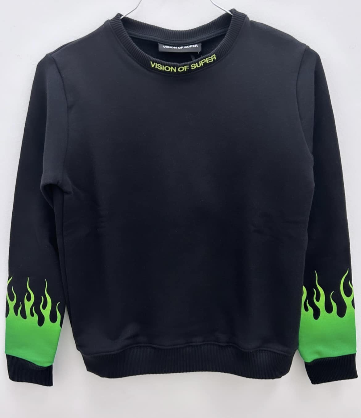 Felpa paricollo Logo+Fiamme Verde Fluo