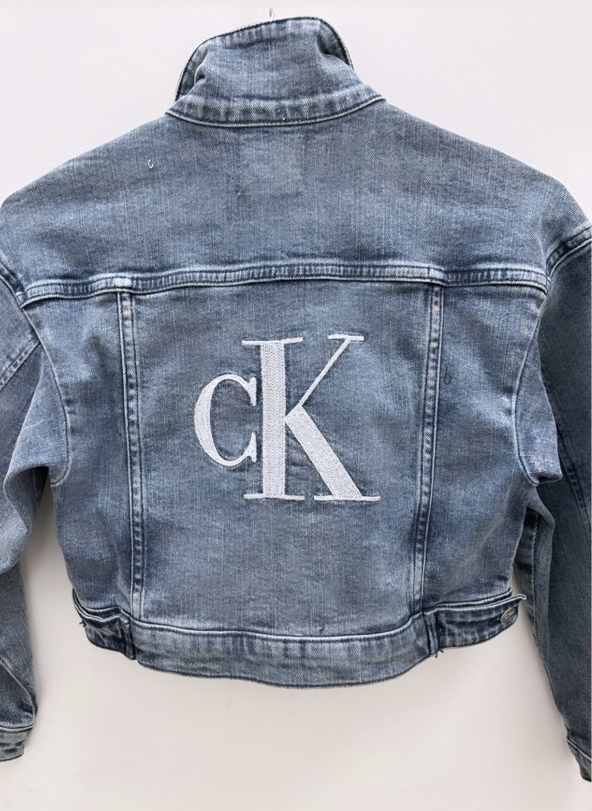 Giubbino jeans corto logo ricamato sulla schiena