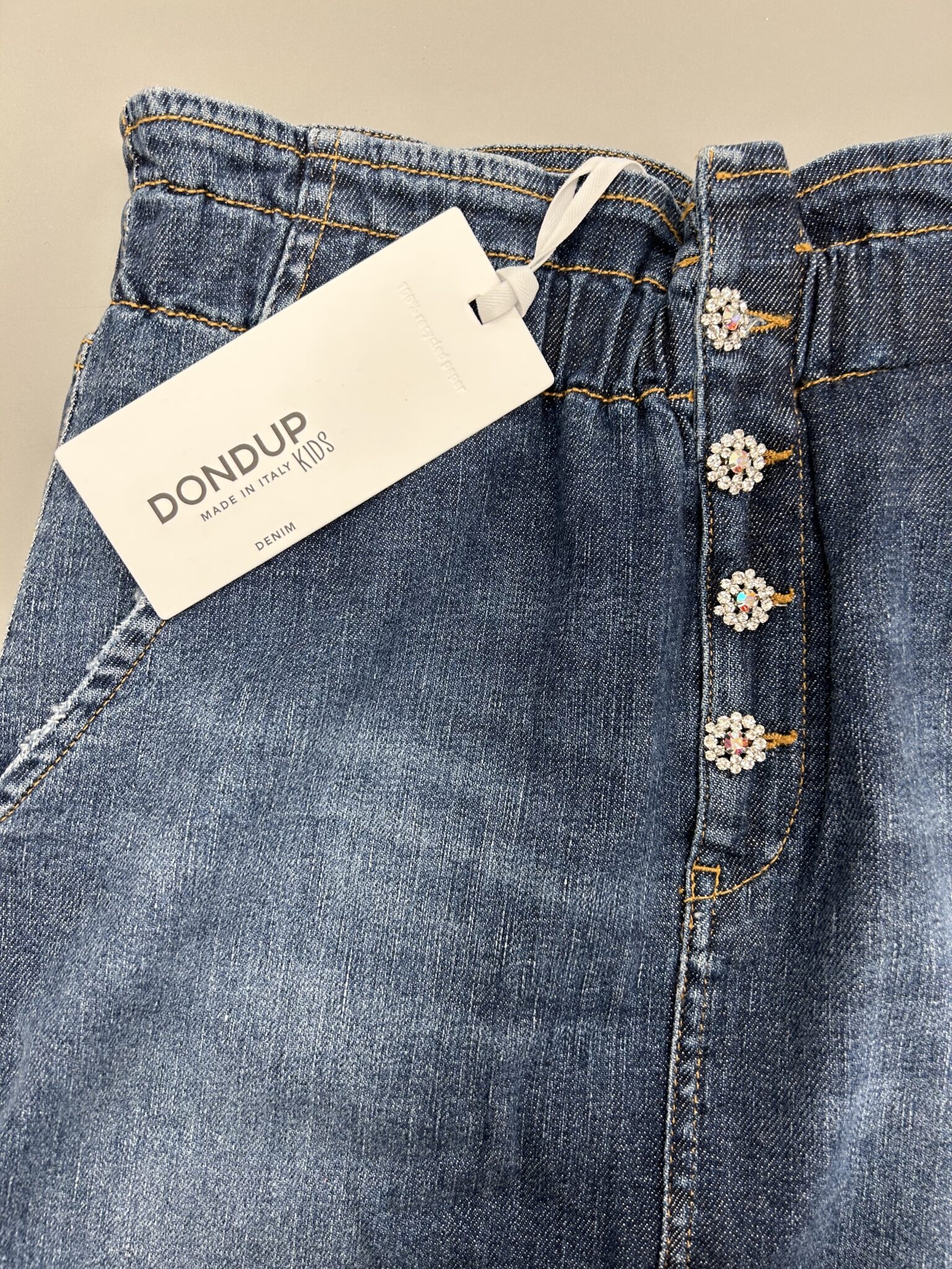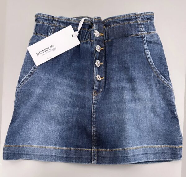 Minigonna di jeans a vita alta con elastico e bottoni gioiello