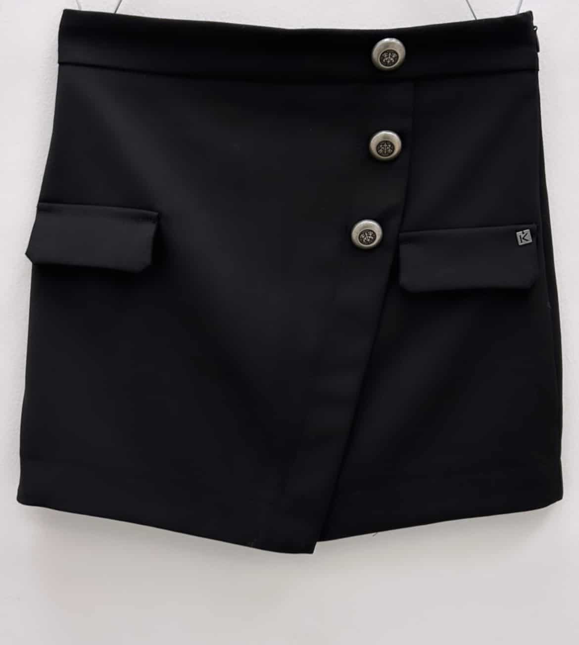 Gonna con bottoni applicati e finte taschine zip laterale ed elastico in vita