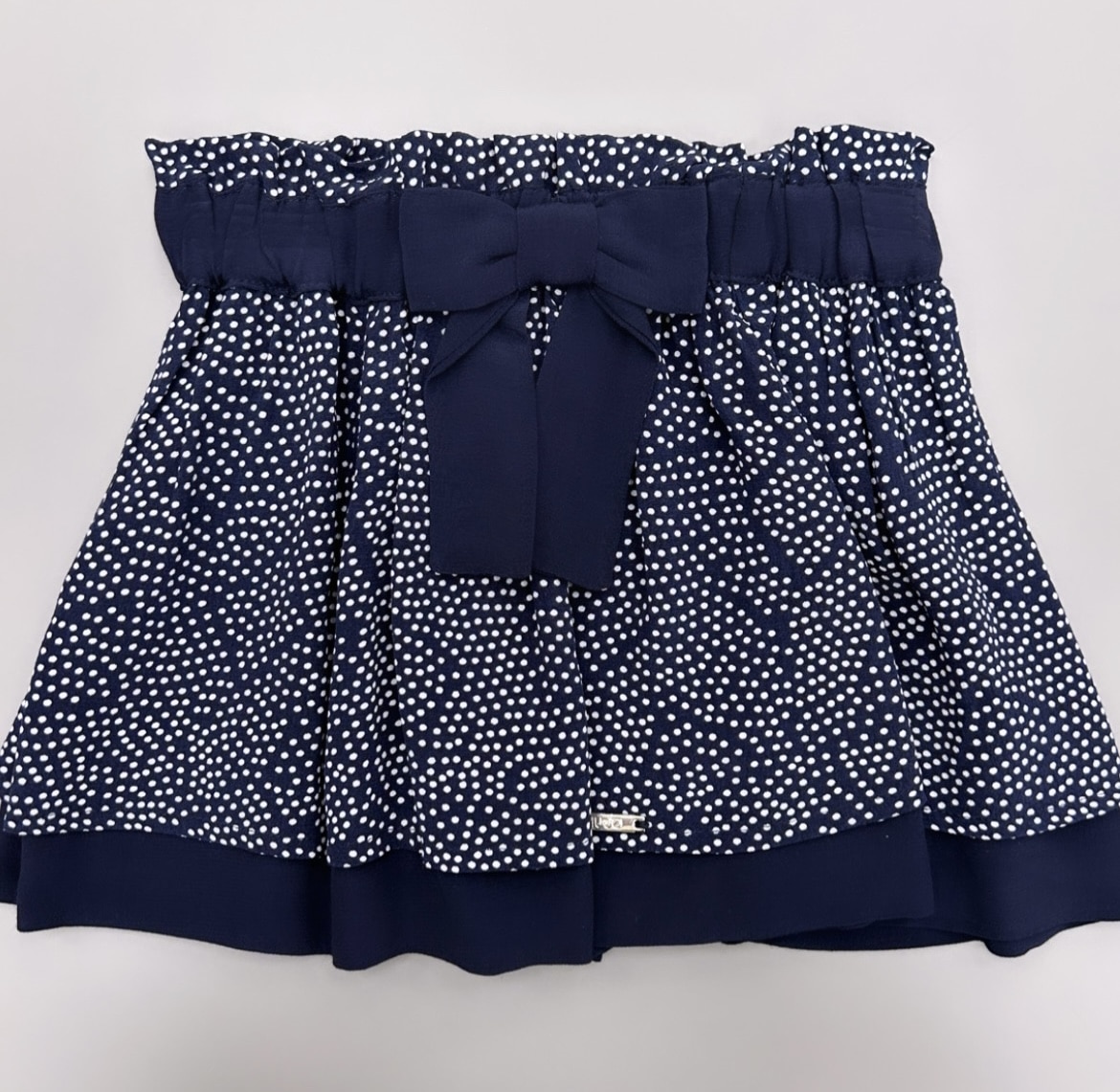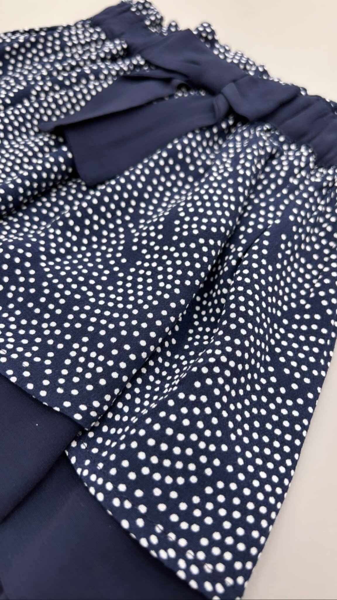 Gonna a pois con vita alta, coulisse e fiocco.