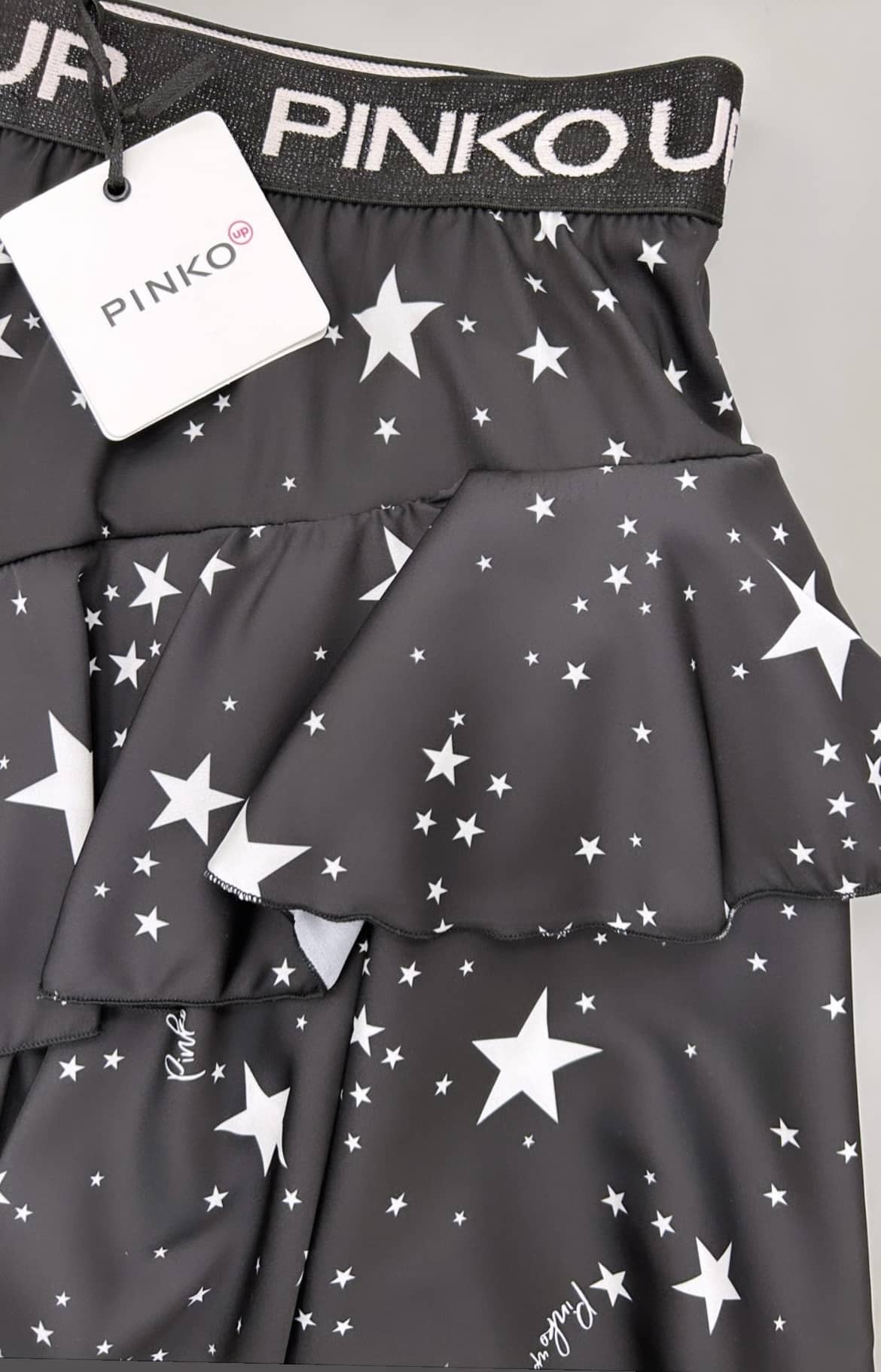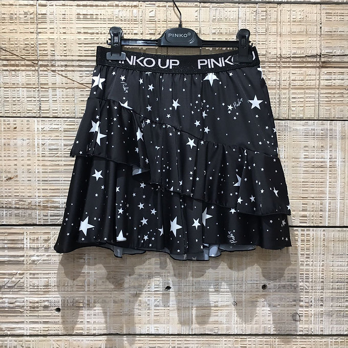 Gonna a balze con stampa stelle e elastico in vita con logo.