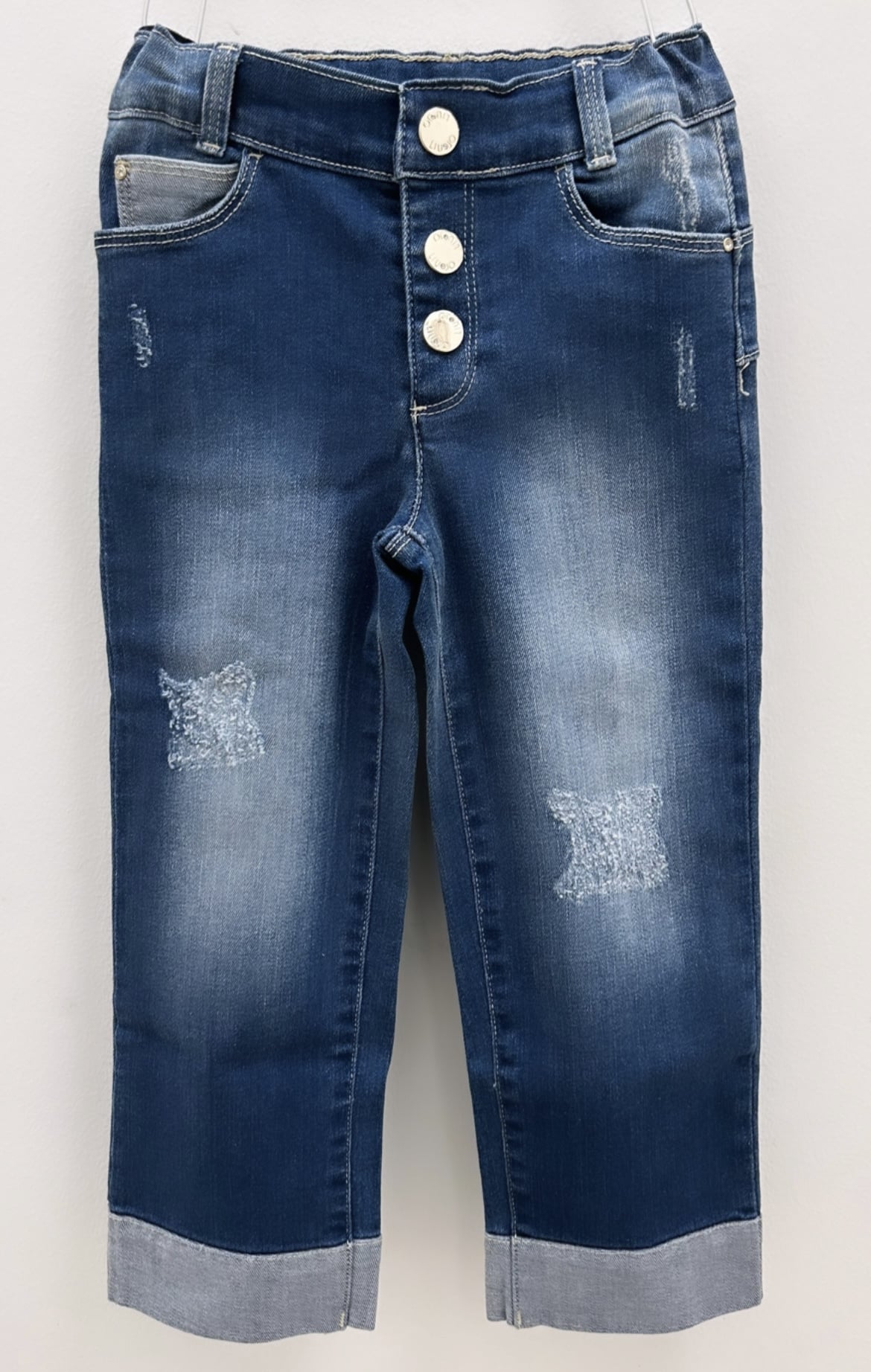 Jeans cropped con bottoni oro personalizzati