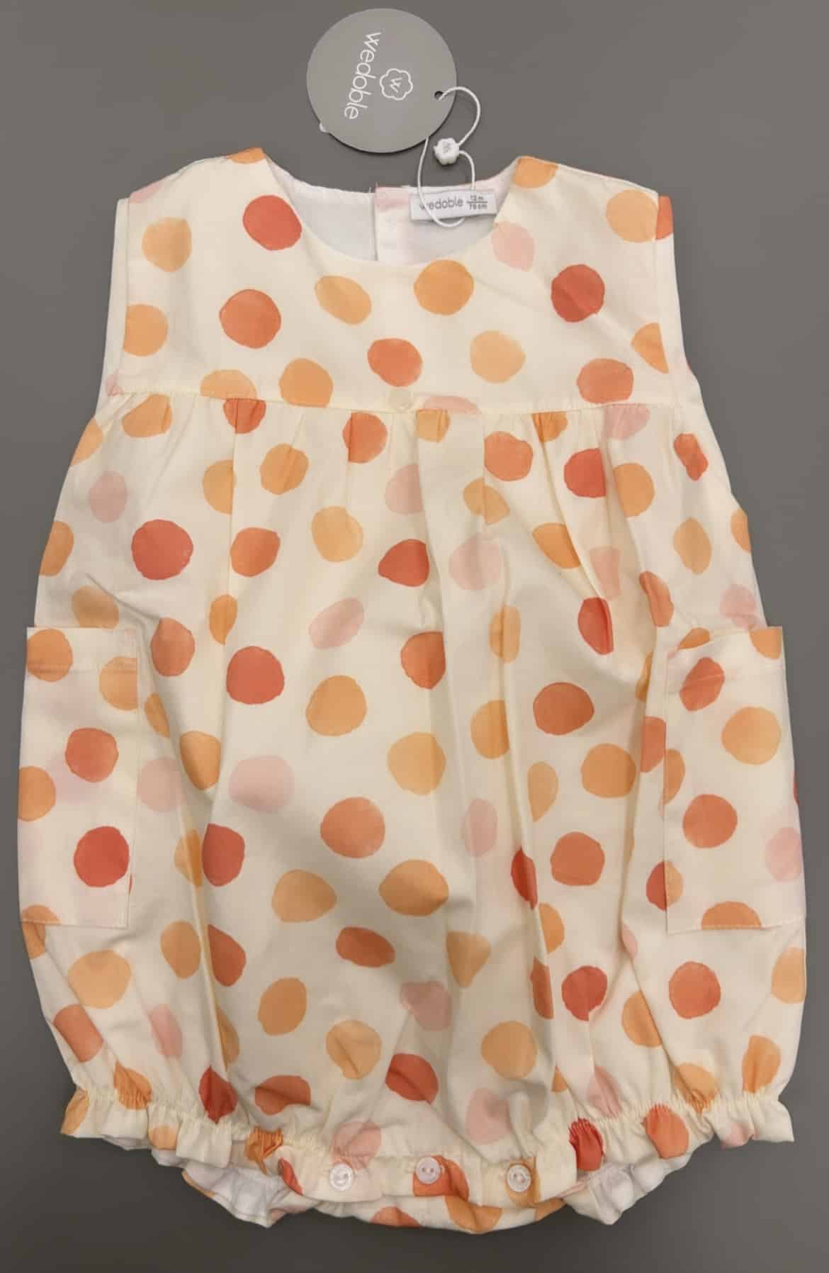 Pagliaccetto neonata smanicato con tasche laterali collo rotondo bottoni al cavallo ed  elastico sul girogamba