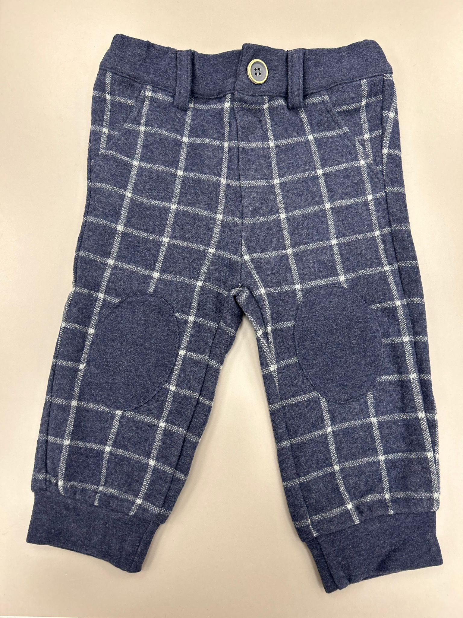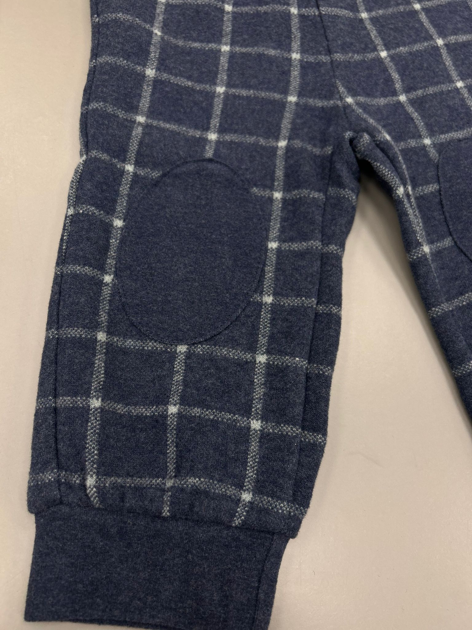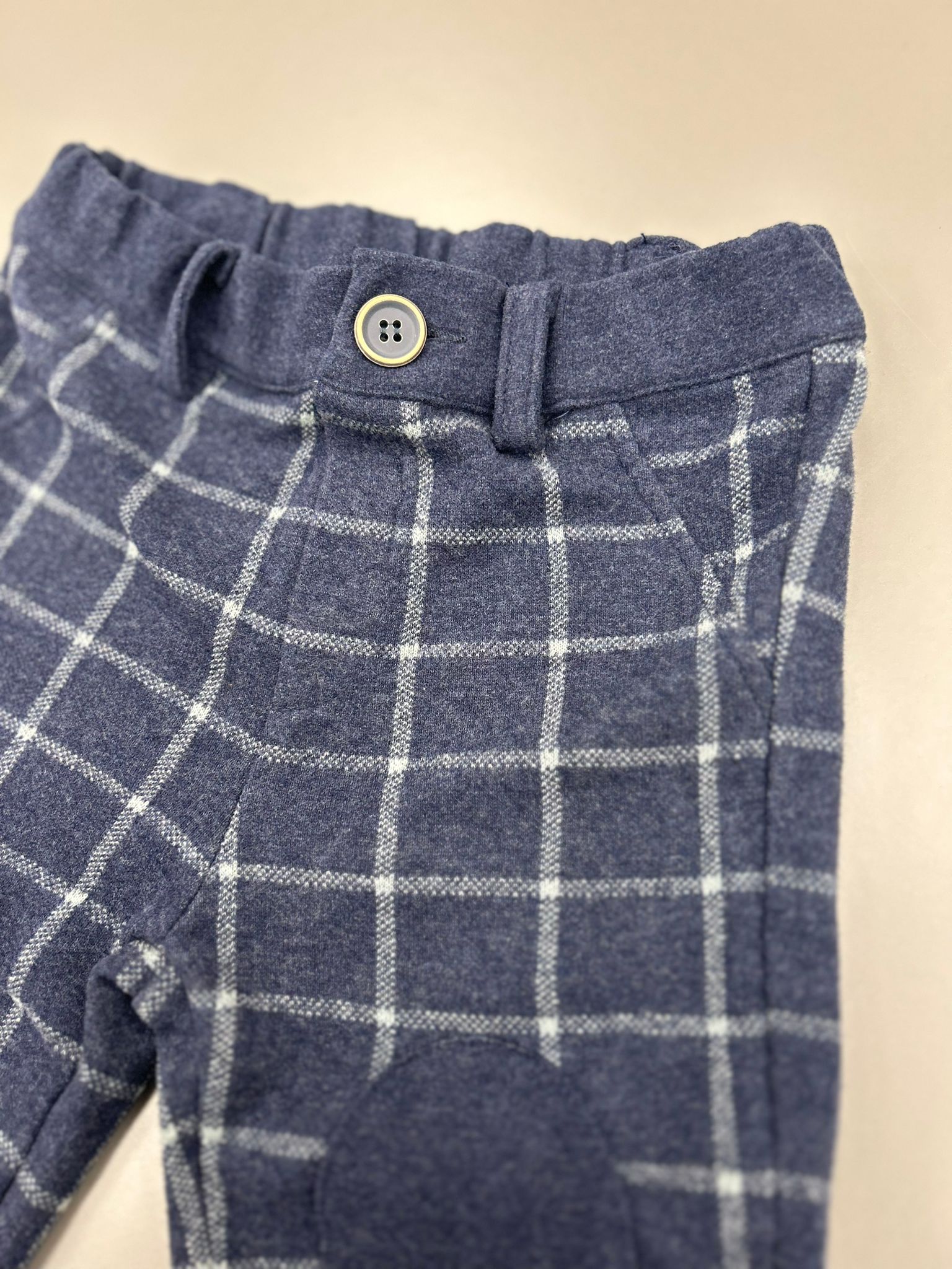Pantalone a quadri blu in cotone felpato