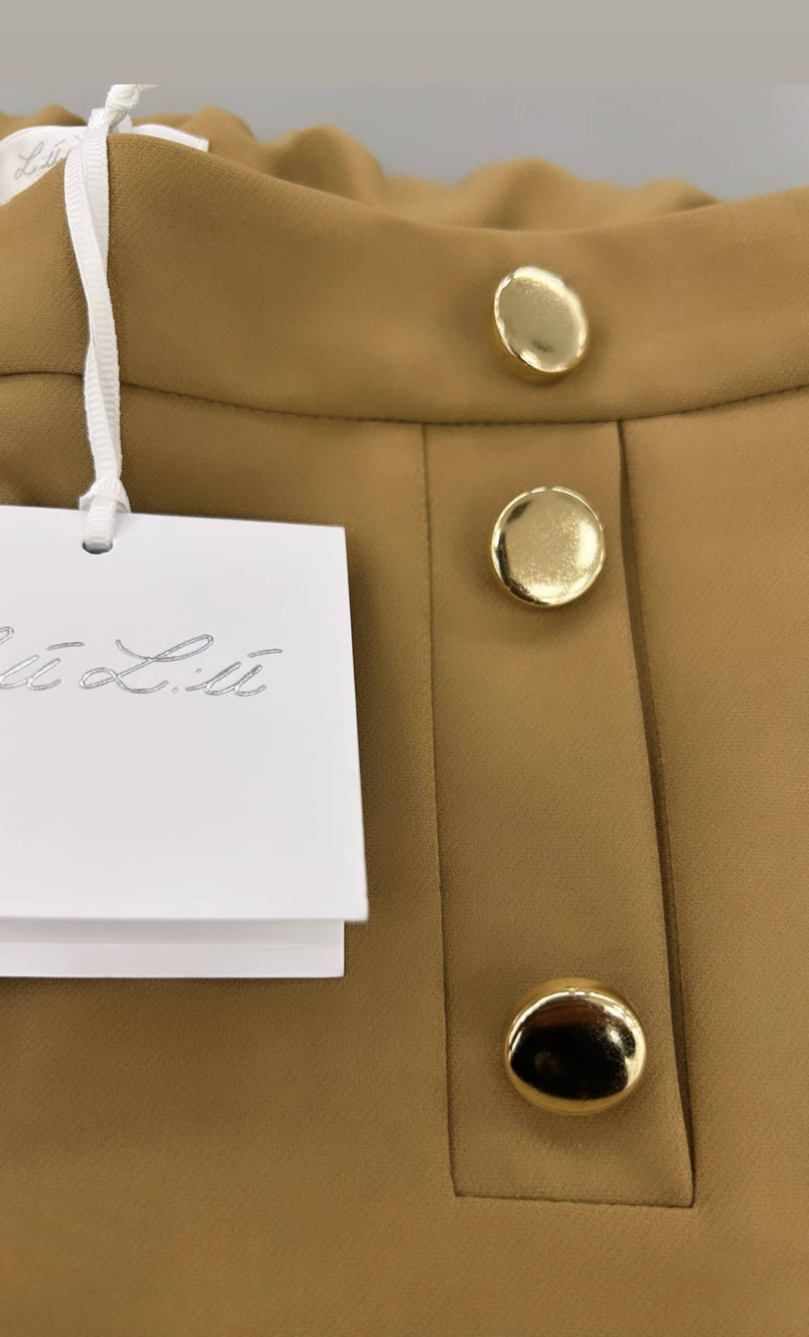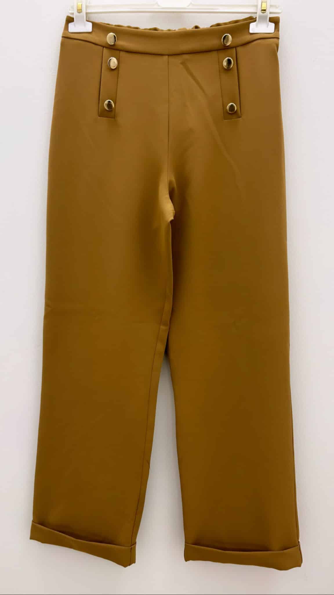 Pantalone a palazzo con risvolto vita alta con bottoni e cerniera laterale