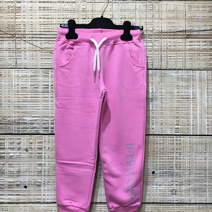 Pantalone in felpa con coulisse in vita e con logo strass applicato sulla gamba.