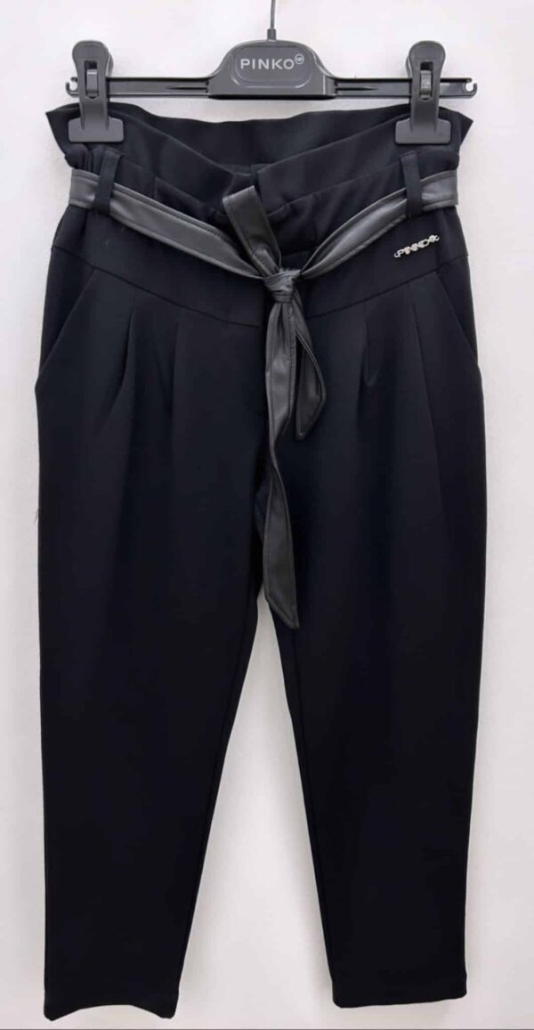 Pantalone a vita alta con cintura in ecopelle removibile.