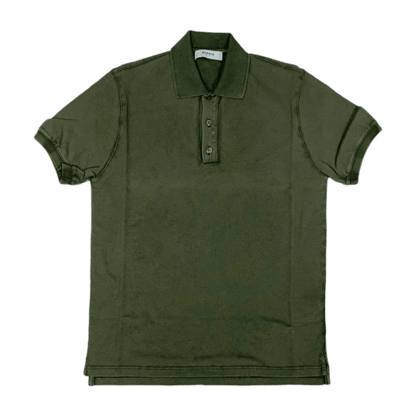 Polo a maniche corte in piquet corroso, color militare.