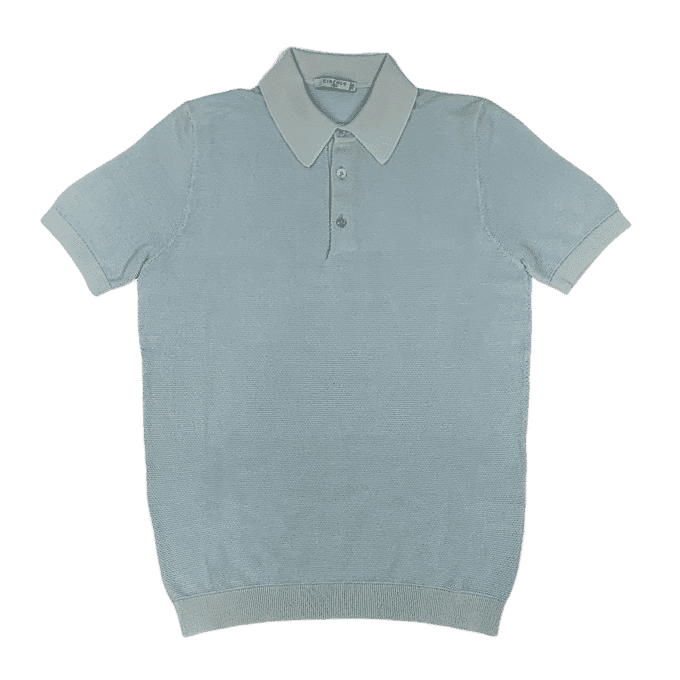 Polo a manica corta lavorazione punto pallino, colore sky. 100% made in Italy.
