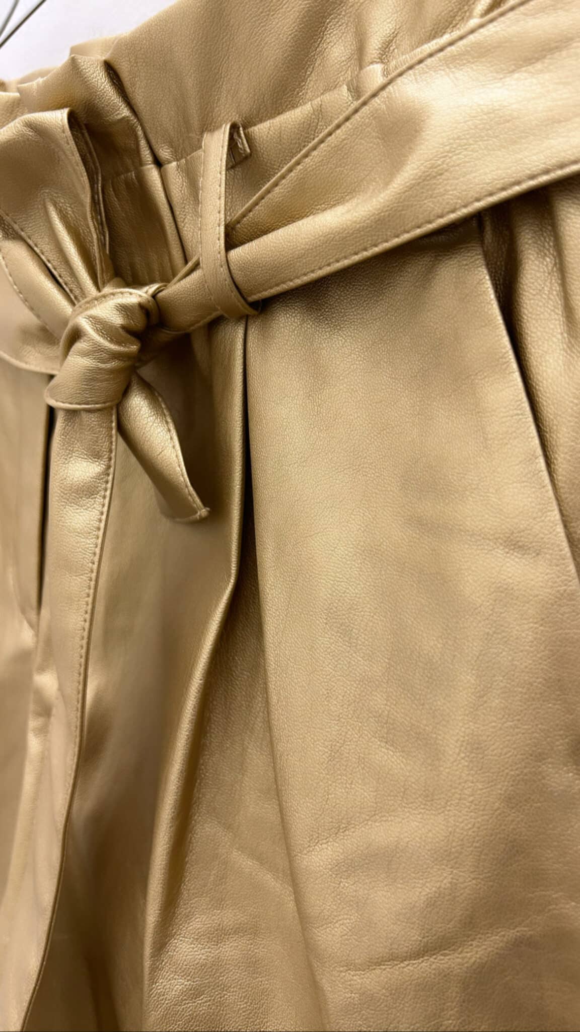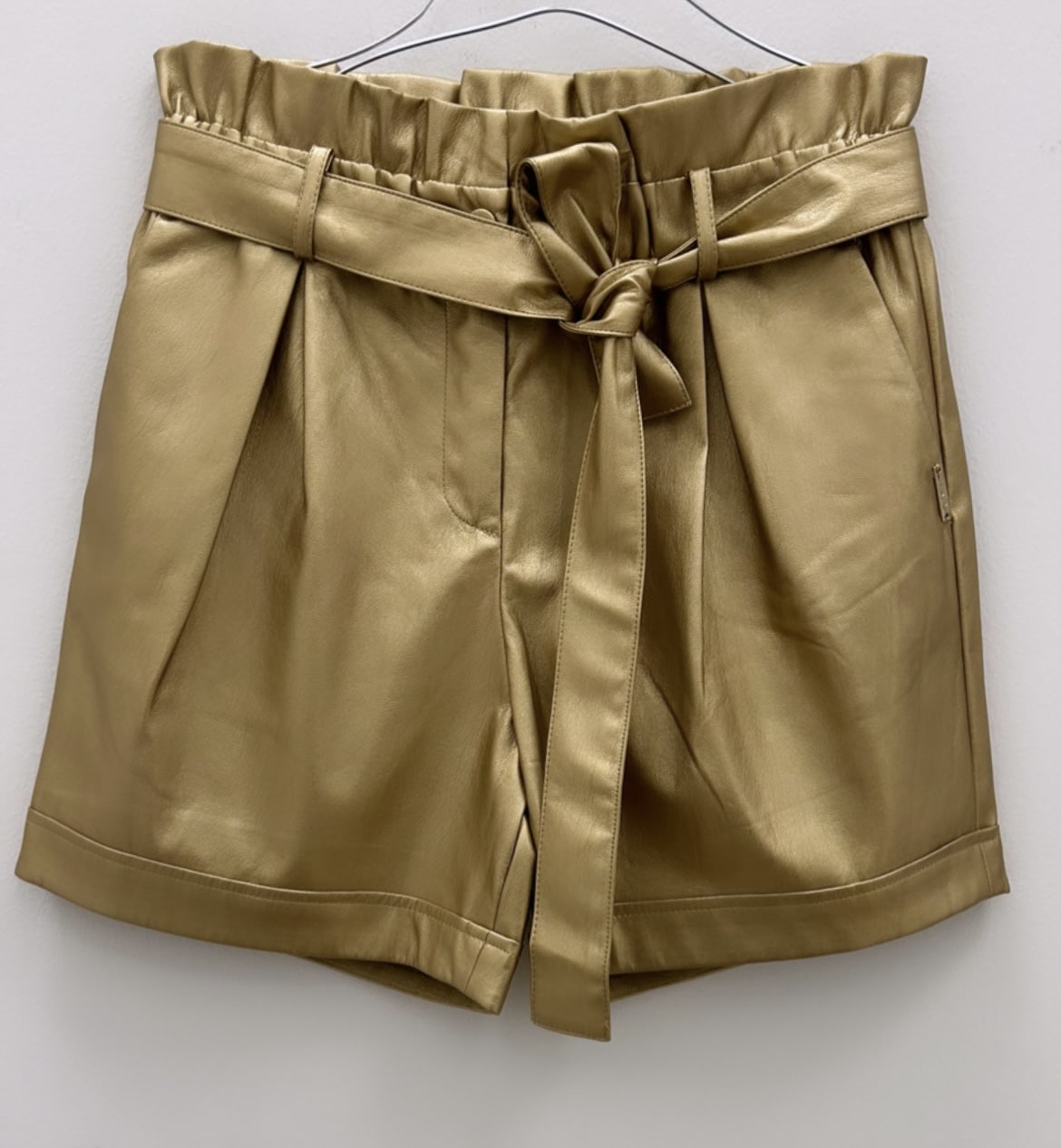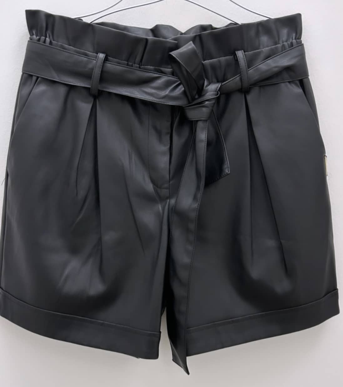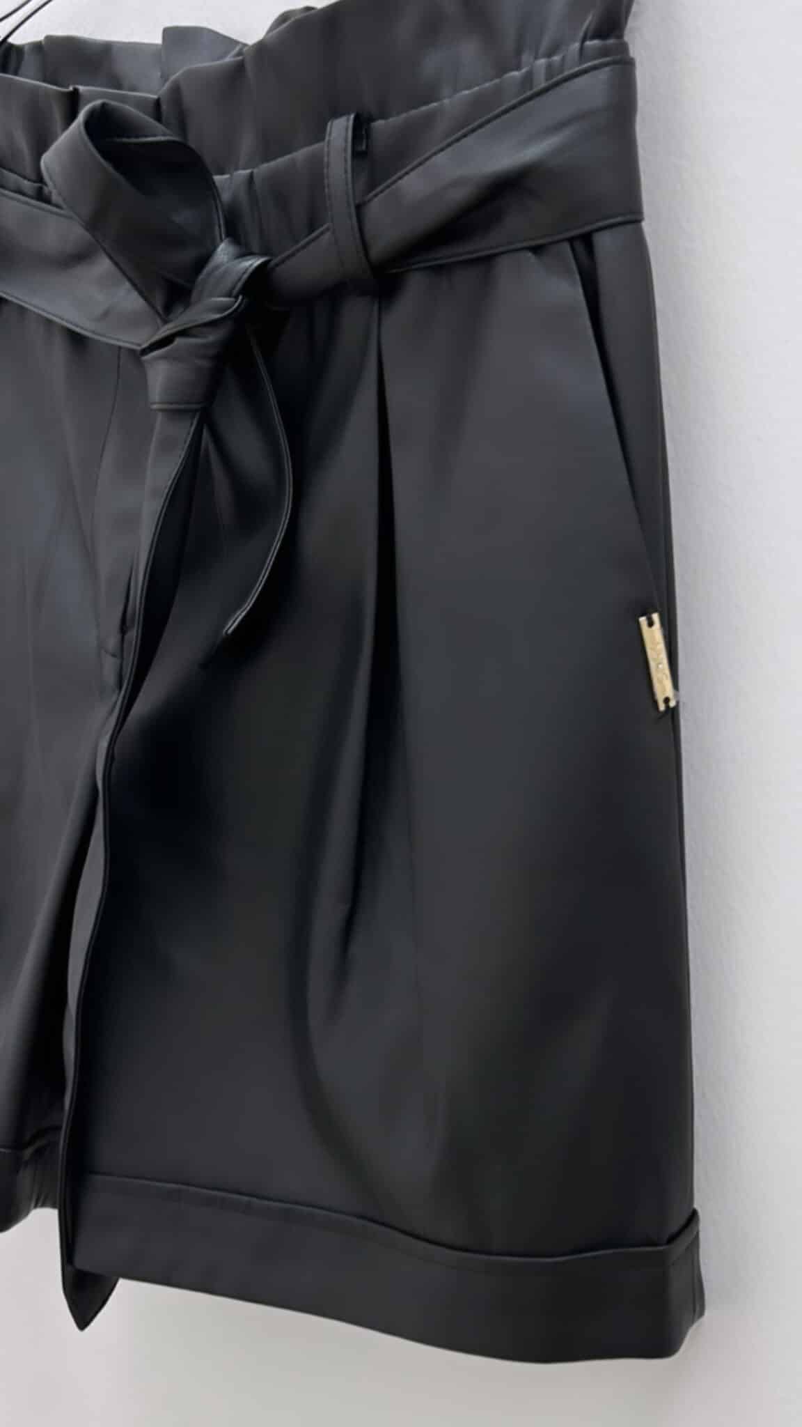 Shorts in ecopelle a vita alta con cintura e risvolto sulla gamba