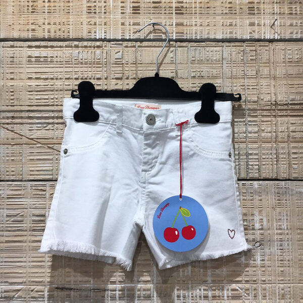 Shorts in denim con chiusura a botton e orlo sfrangiato.