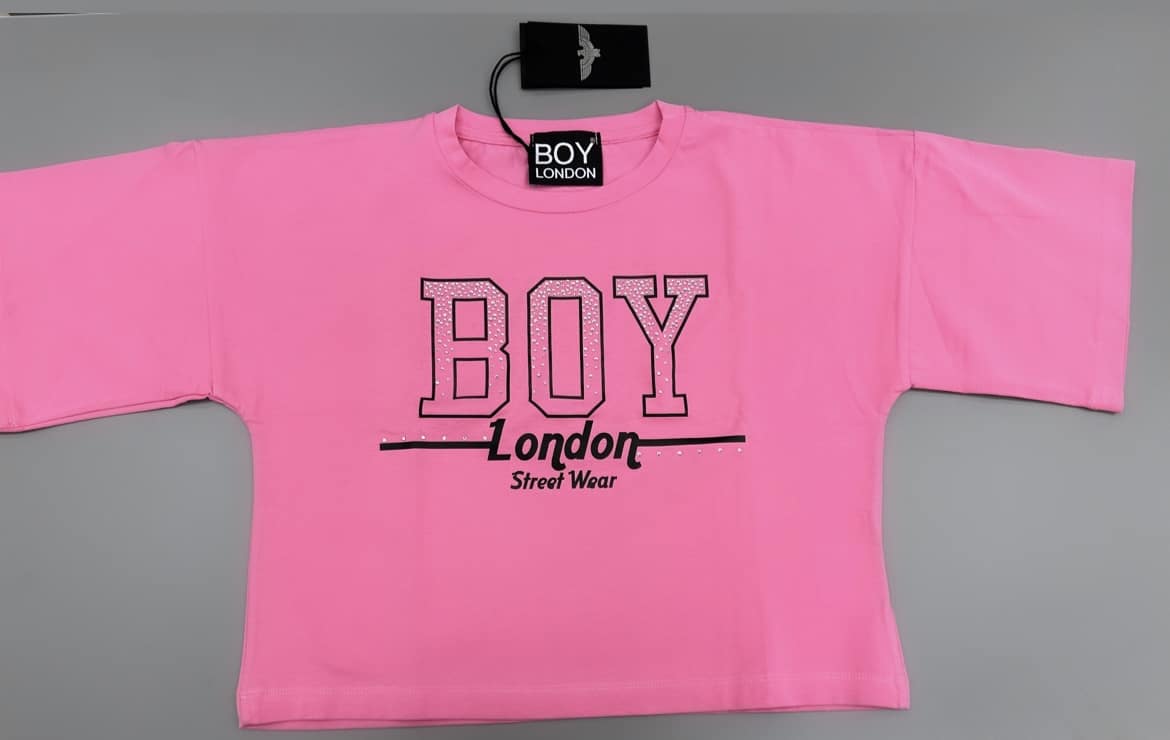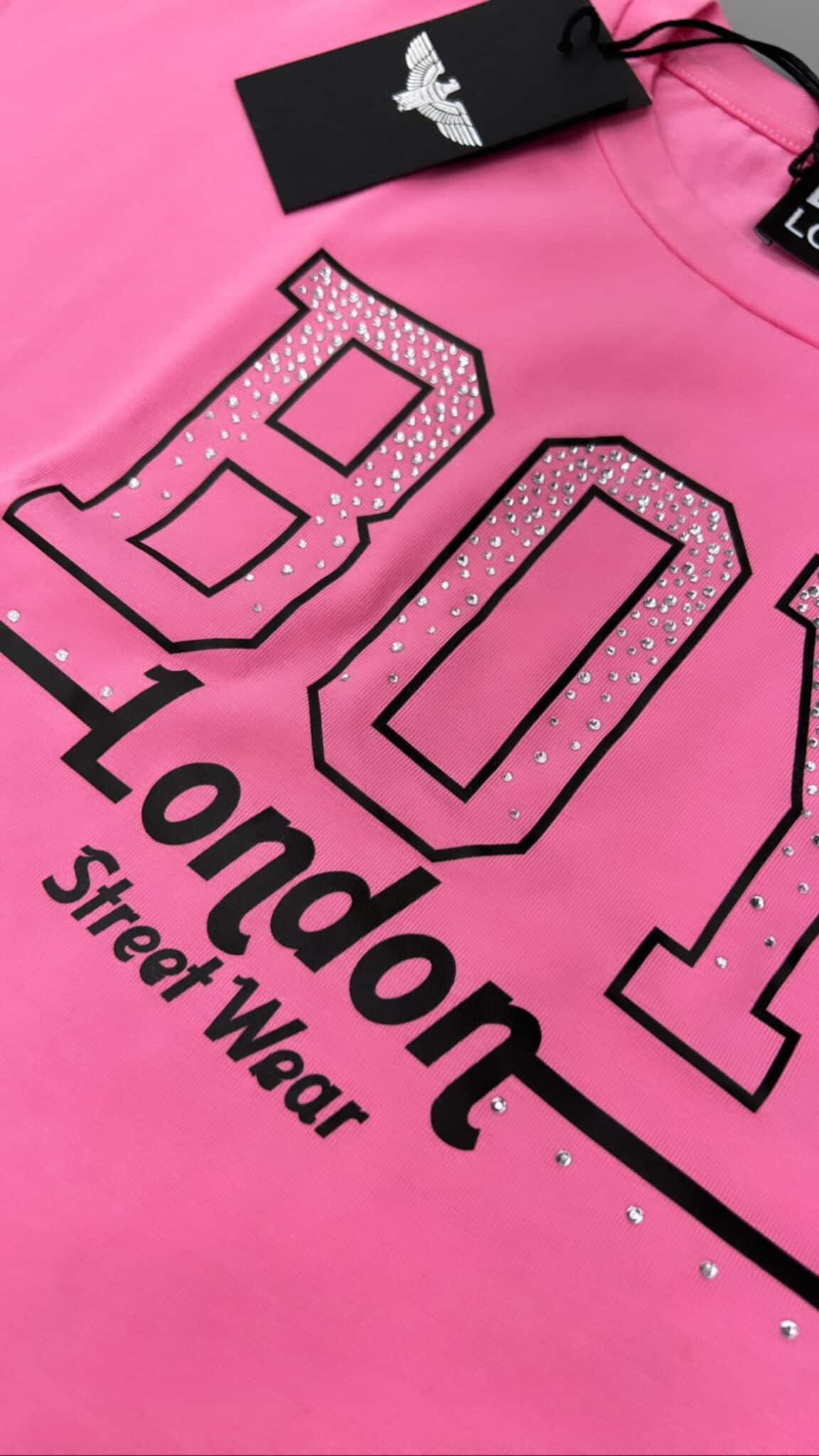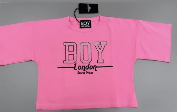T-shirt crop a girocollo con stampa logo sul davanti e applicazioni di strass.