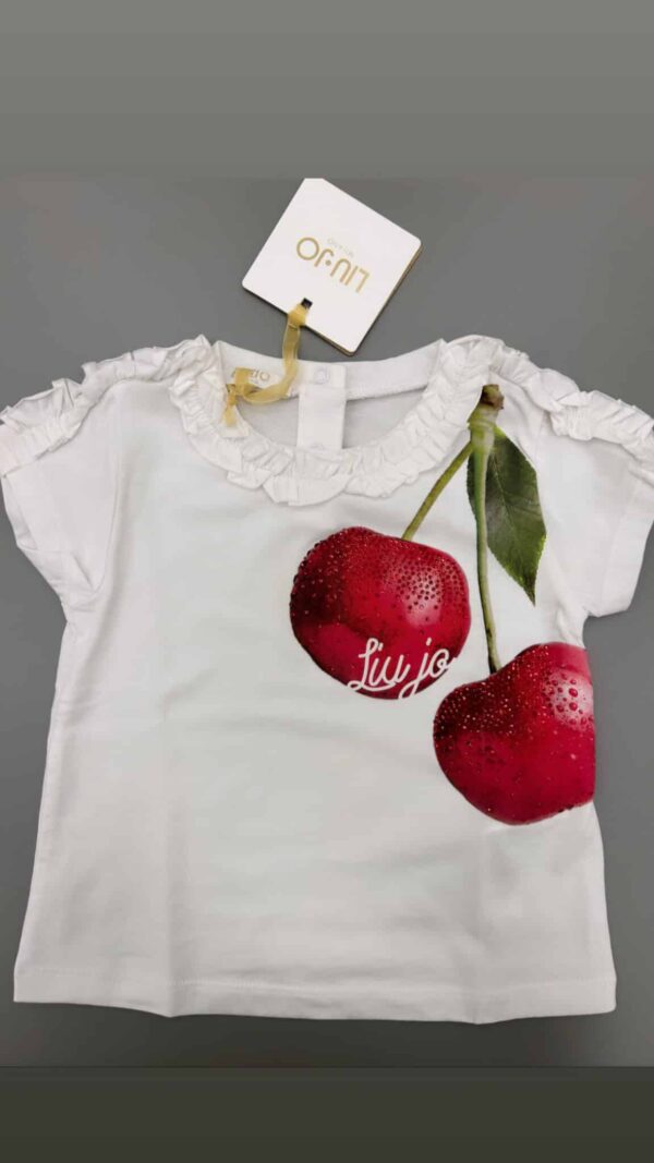 T-shirtmezza manica arricciata con stampa ciliegia e strass