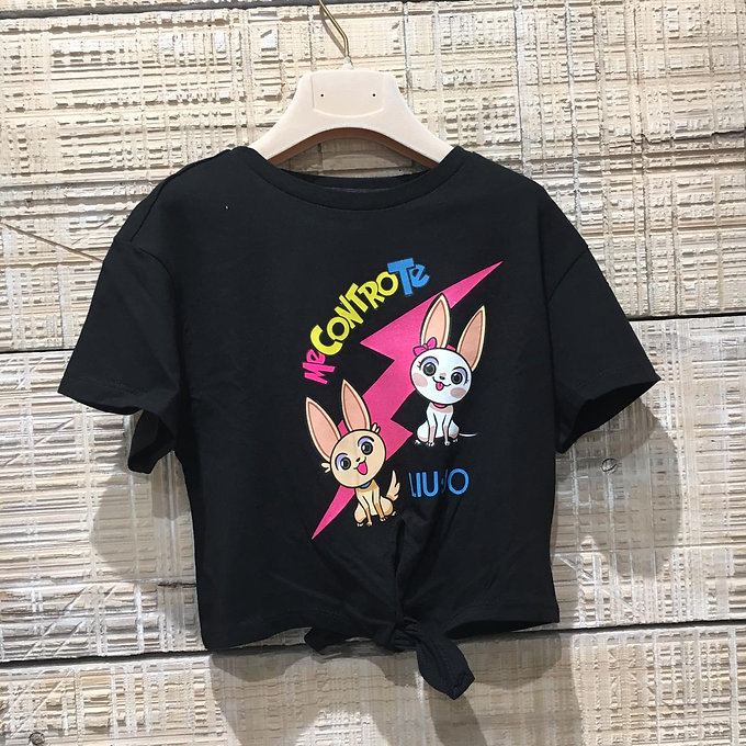 T-shirt a girocollo con nodo sul fondo e stampa sul davanti.