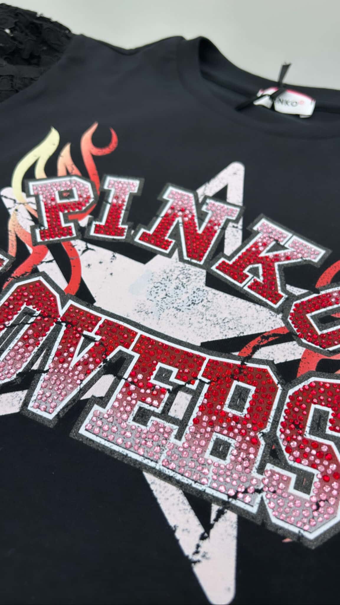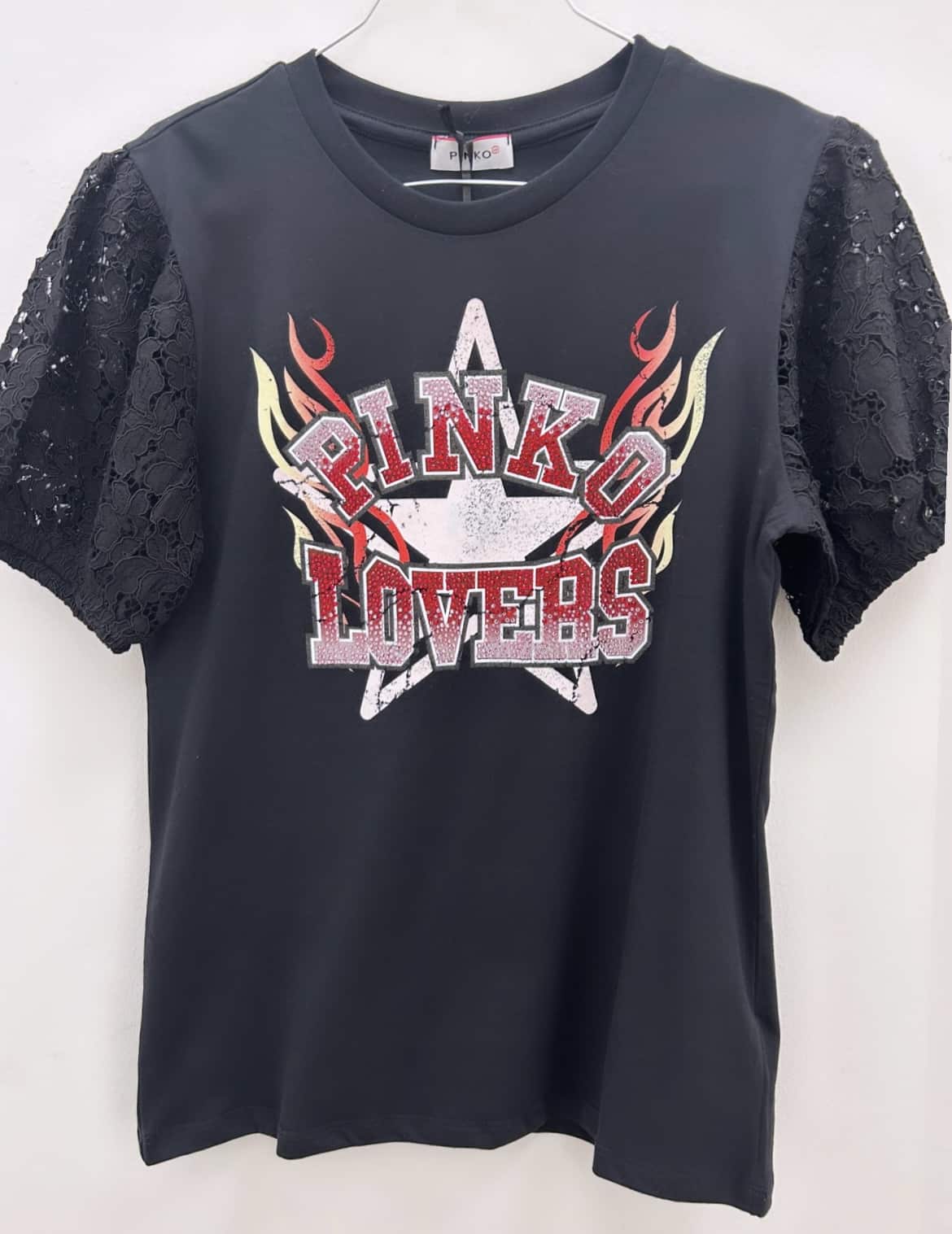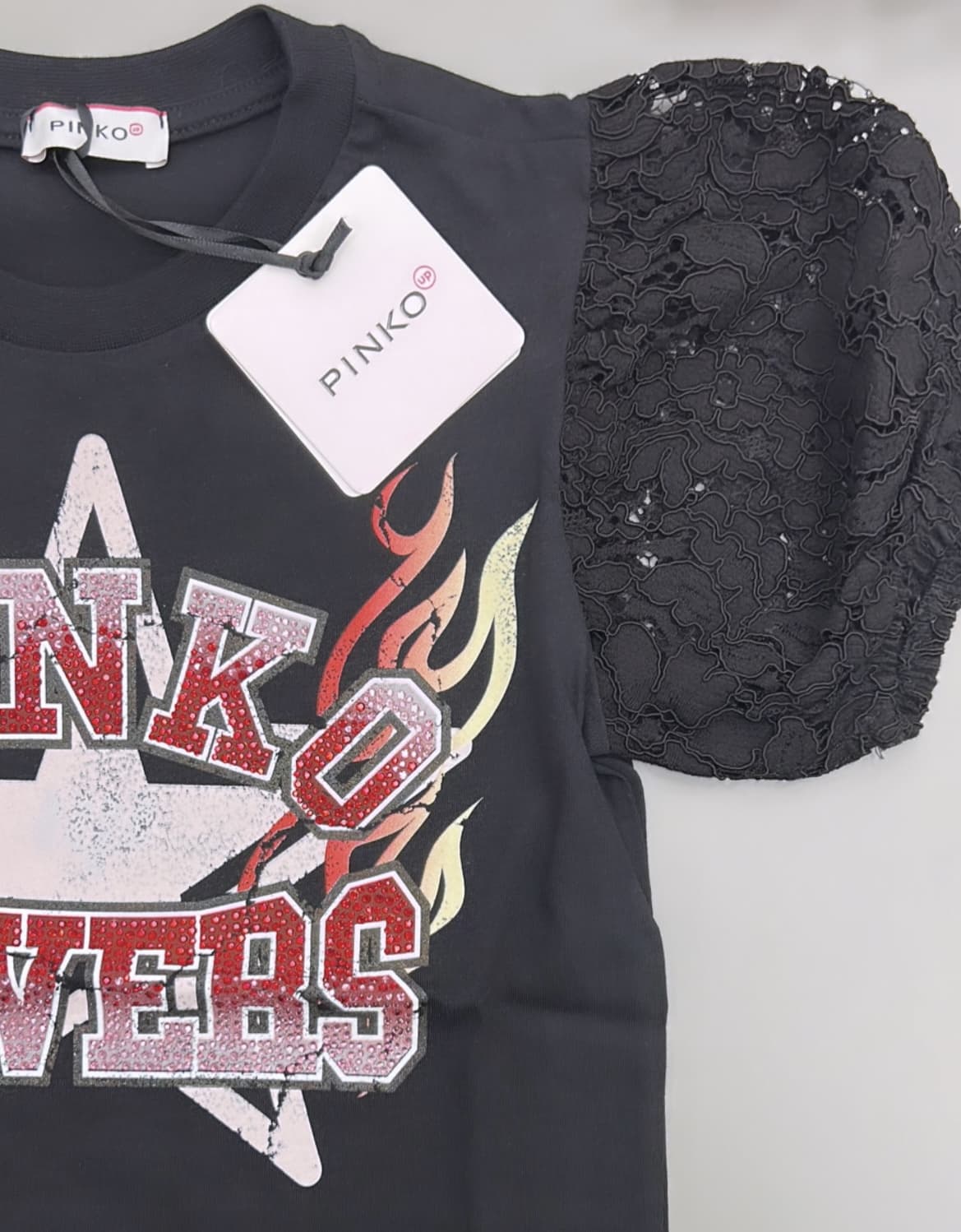 T-shirt mezza manica con maniche in pizzo e stampa logo