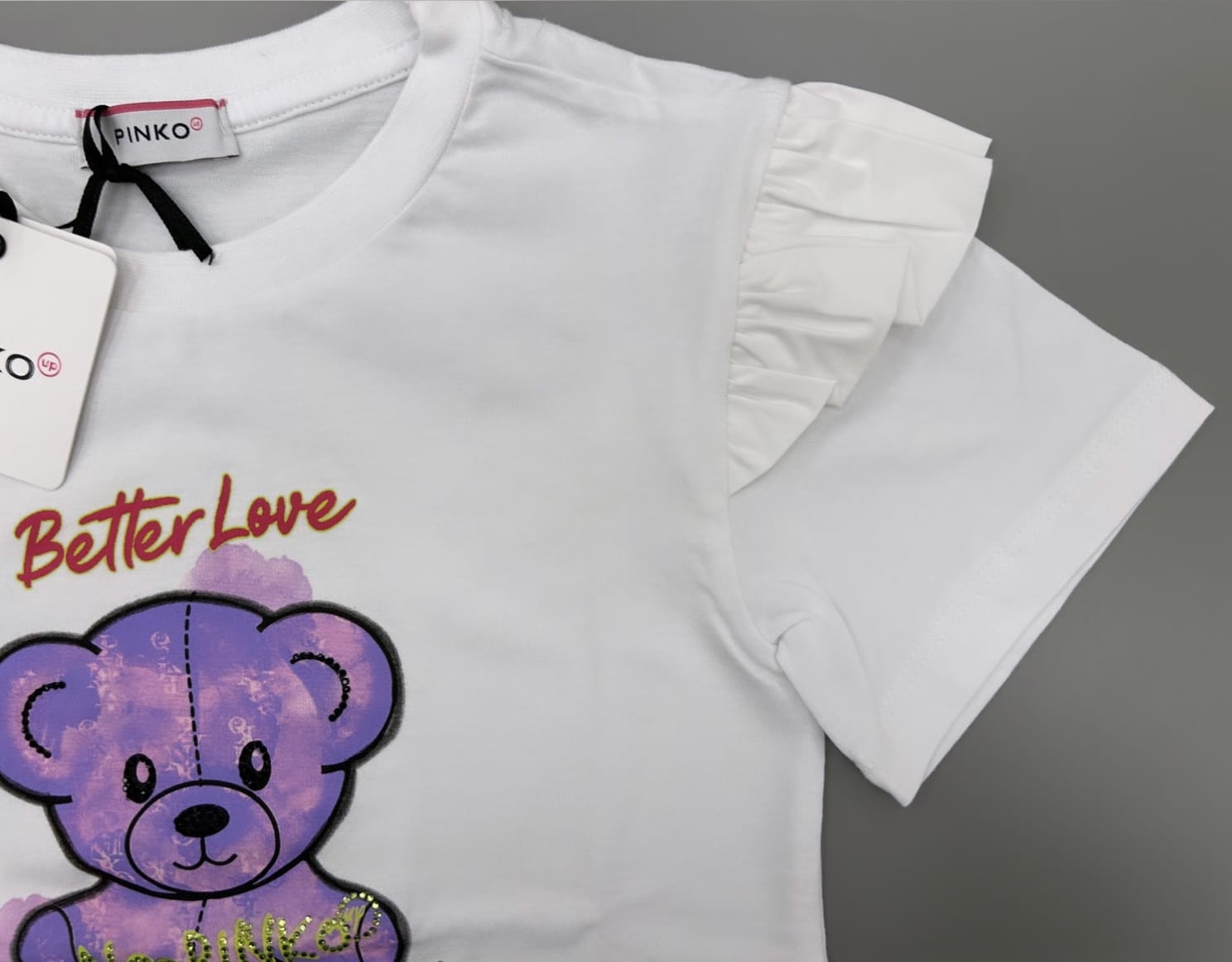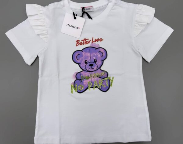 T-shirt mezza manica stampa orsetto con dettaglio rouche sulla manica