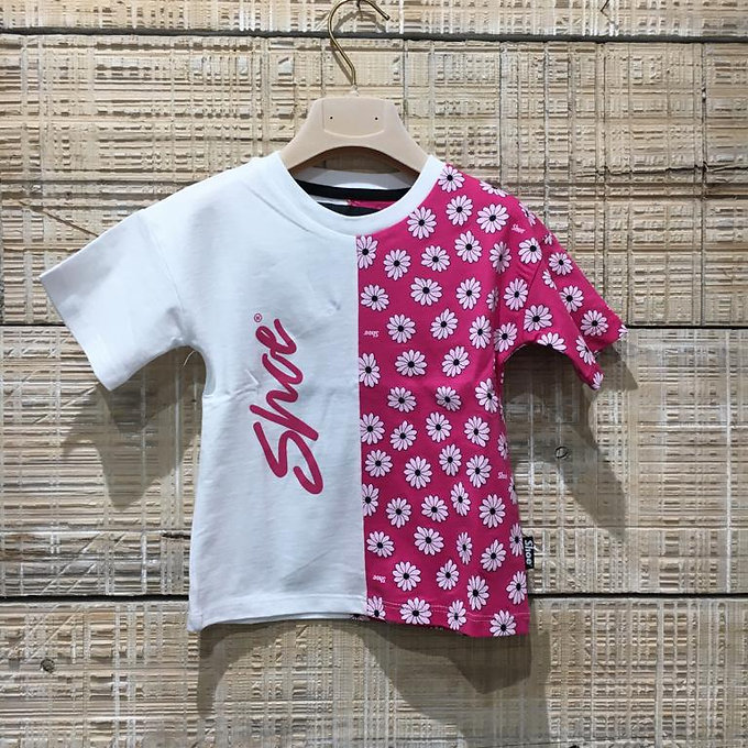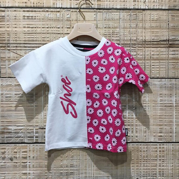 T-shirt neonata mezza manica scritta logo sul davanti e stampa flowers