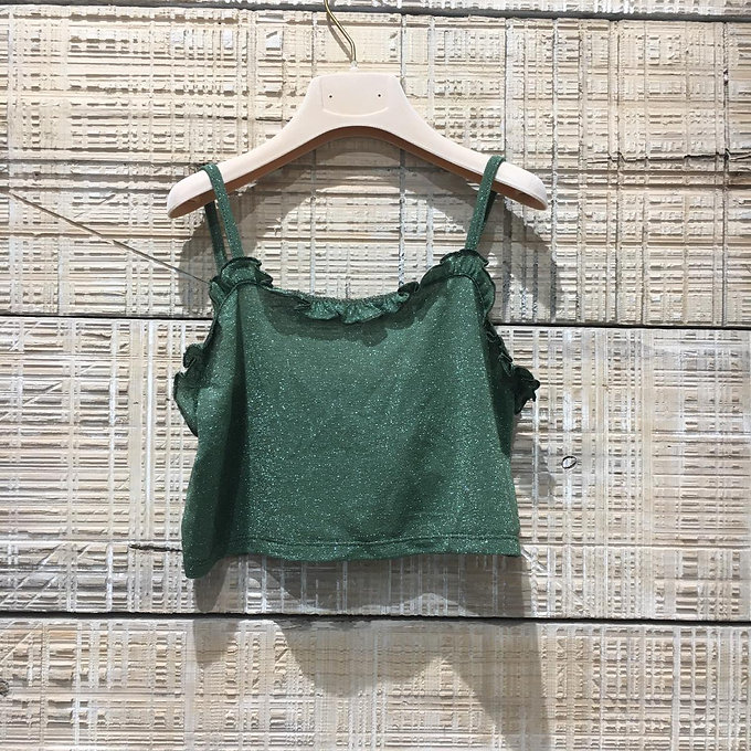Crop top in lurex con mini rouches.