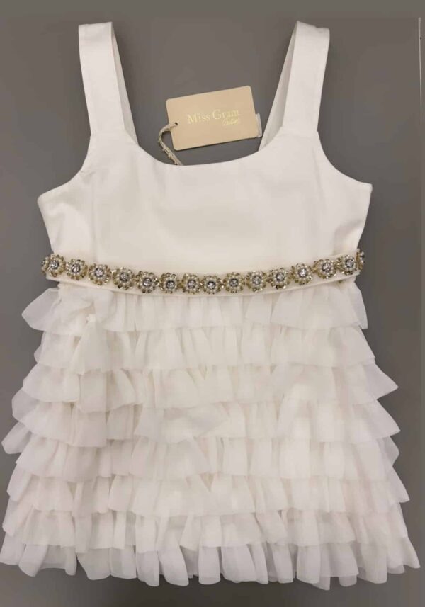 Top cerimonia in rasatello con balze in voile e  cinturina gioiello