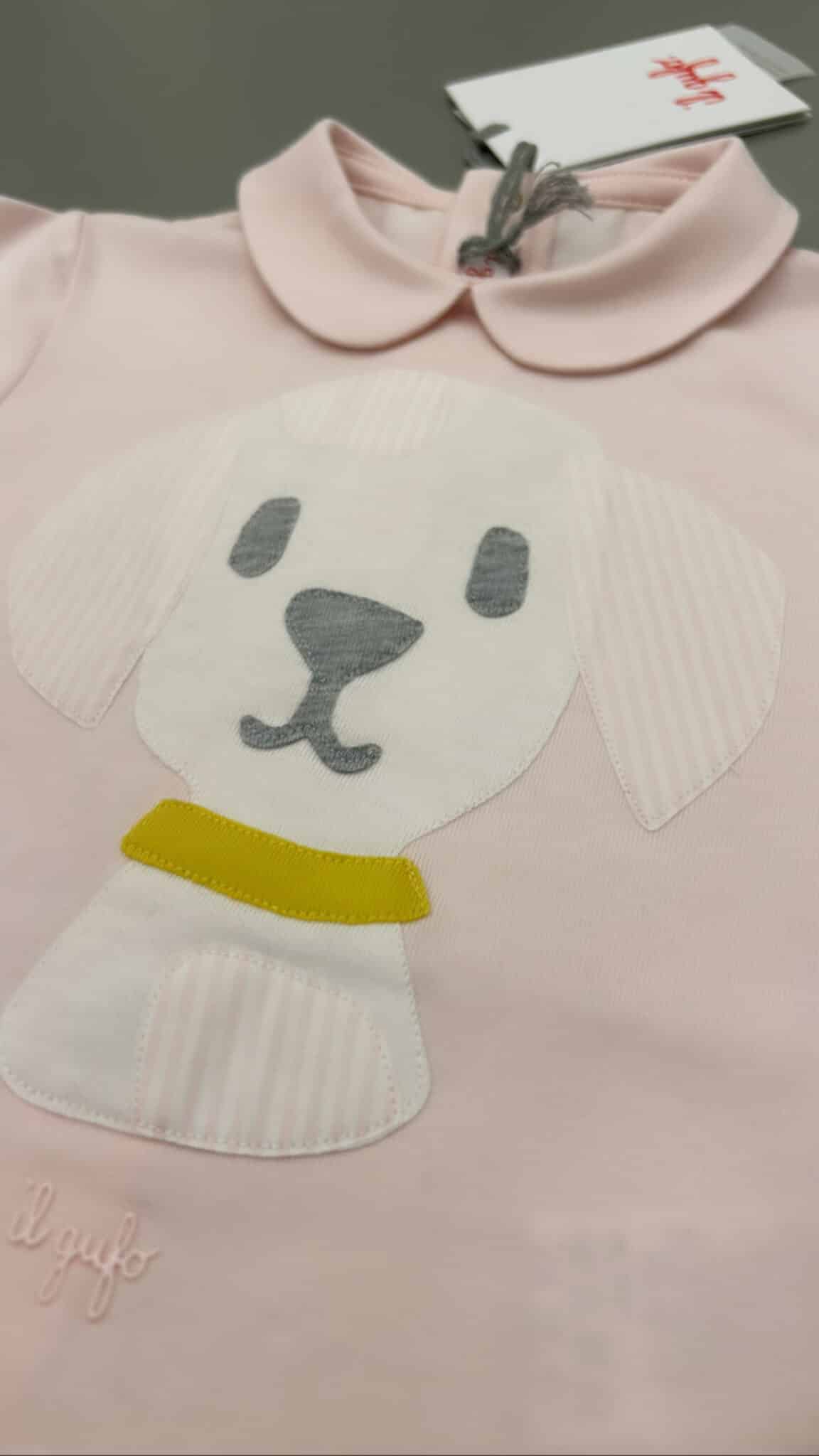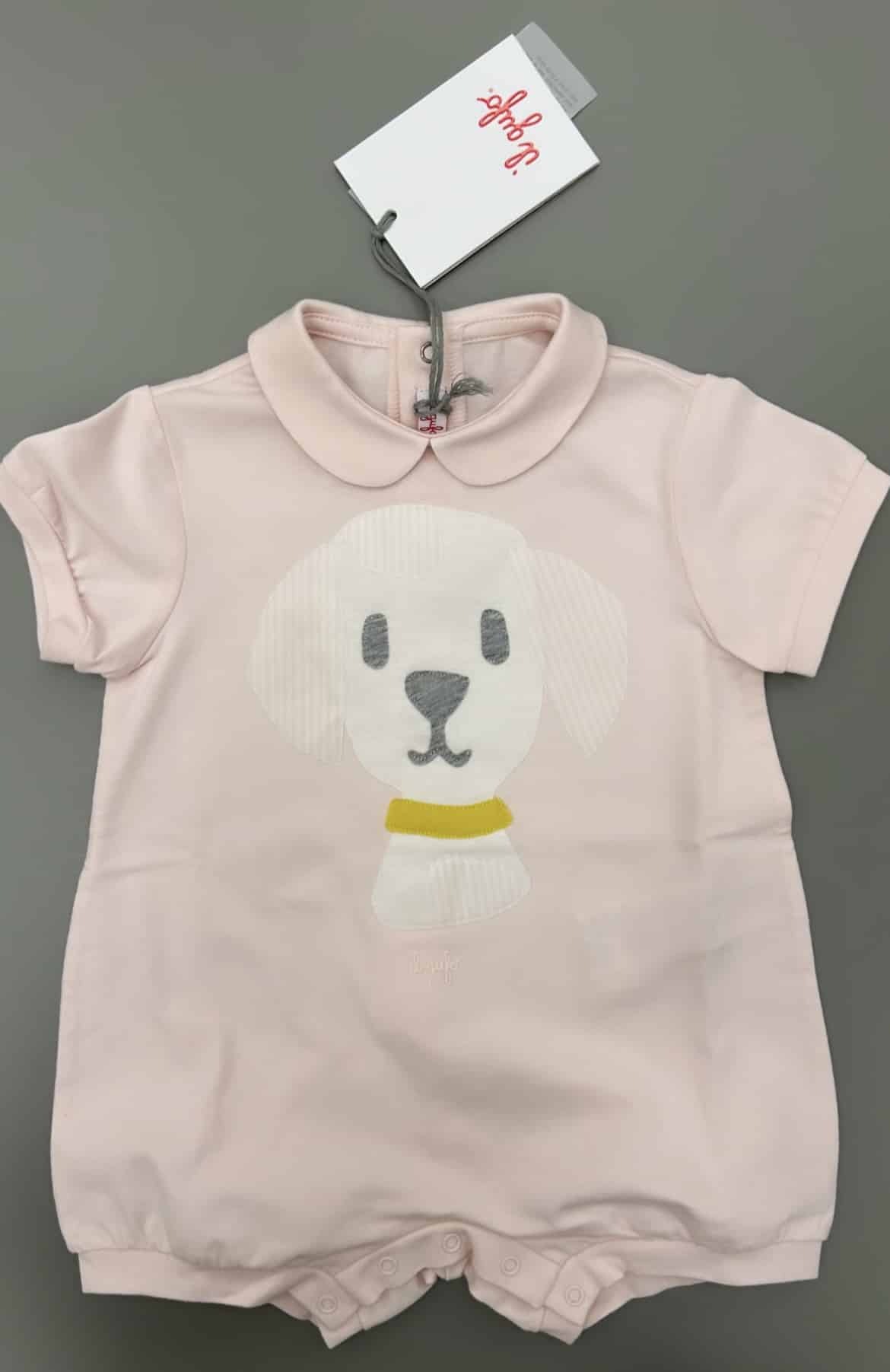 Tutina corta neonata  con  colletto e stampa cagnolino